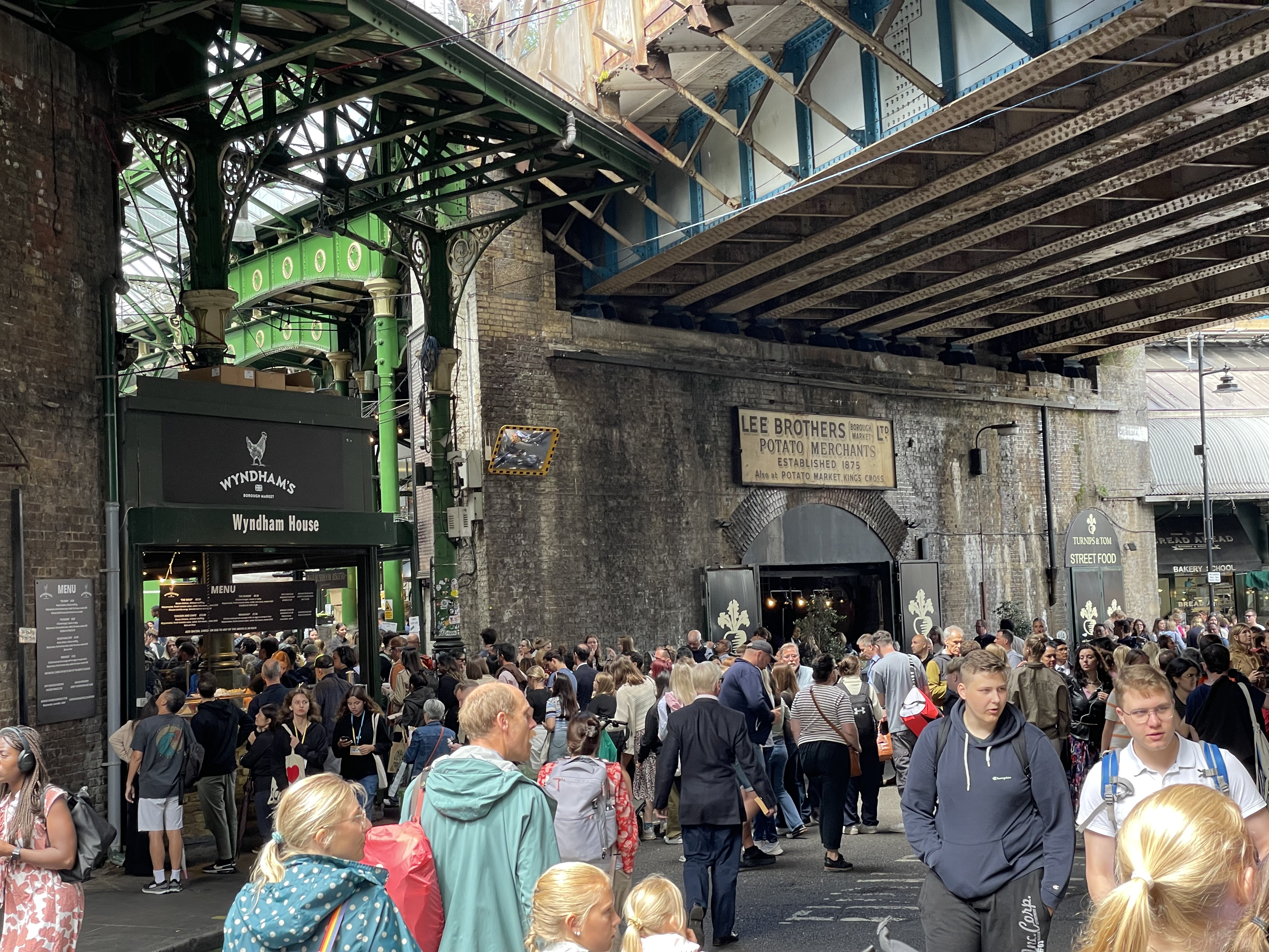 We took a shuttle from the airport into London during the morning rush hour. Since our hotel room was not ready when we arrived, we stumbled around, zombie-like, to Borough Market and the Tate Modern museum. Once our hotel room was ready, we headed back for a shower and a quick nap for Laurie.