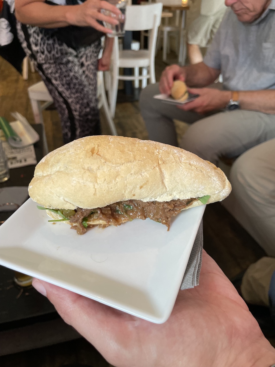 For lunch, we booked an Amsterdam Food tour. It was a 4-hour tour where we tried most of the notable or popular dishes and drinks in Amsterdam. Our first stop was at an old cafe that is one of the oldest cafes in Amsterdam. We tried traditional Dutch apple pie and coffee. At our next stop, we tried an Indonesian-style beef sandwich and beer. From there, we went to a dessert shop to try syrup waffles, chocolate truffles, and hot chocolate. To keep things interesting, they took us next to a butcher to try traditional Dutch sausages and meats. After the butcher, we made our way to a cheese shop where they age their own cheeses. We were served three different styles and ages of cheese with white wine. Our final stop was for herring, eel, and Bitterballen (a Dutchmeat-based snack, made by making a very thick stew thickened with roux and beef stock and generously loaded with meat) with beer.