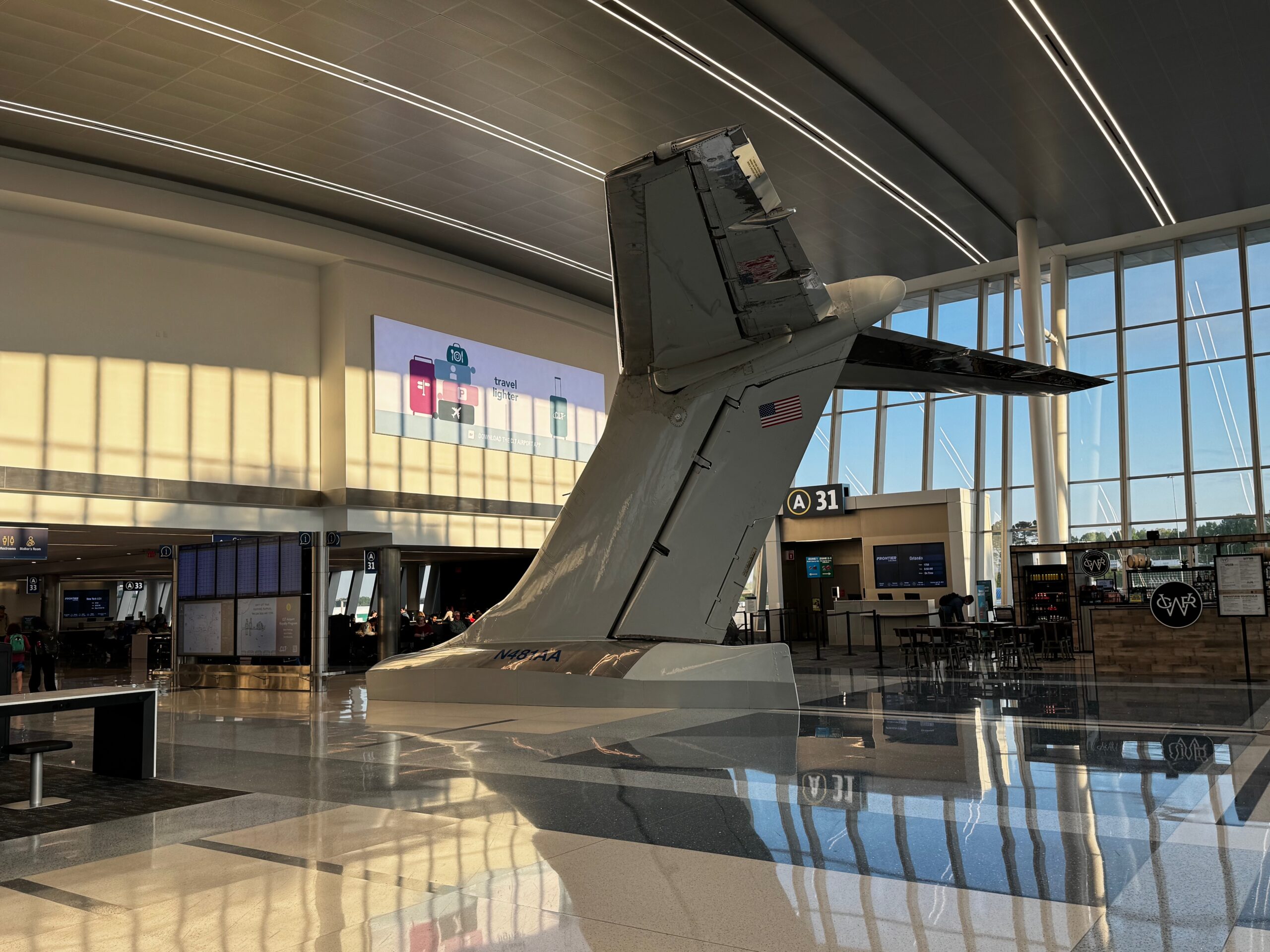 We had a fairly early flight out of CLT and were able to breeze right through security. This allowed us some time to chill and explore the new terminal.