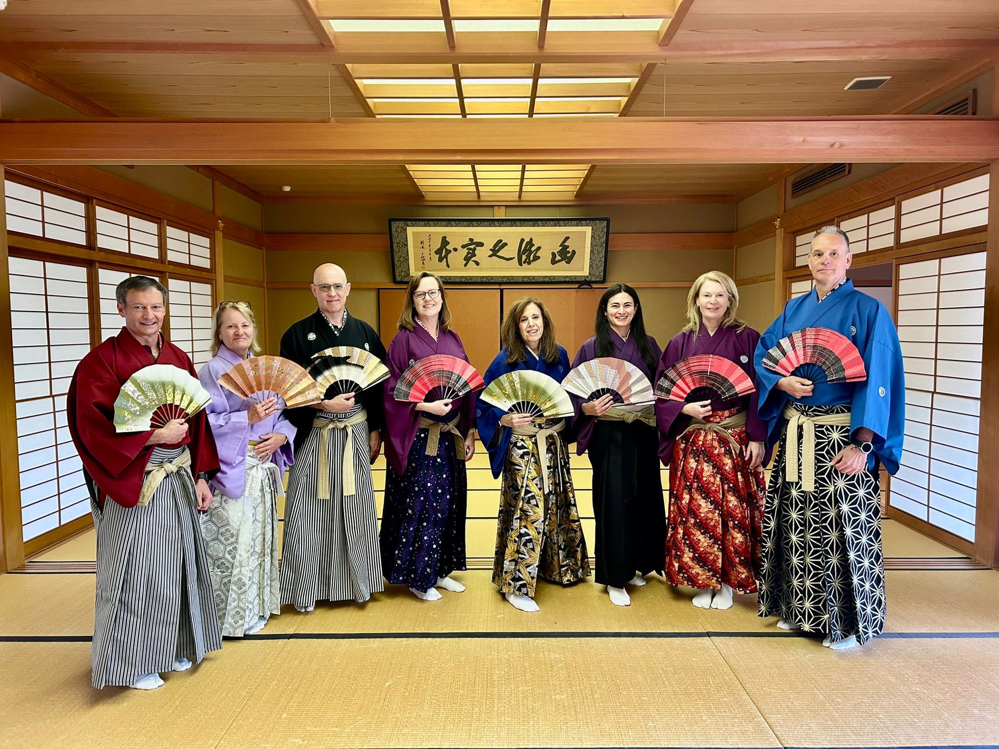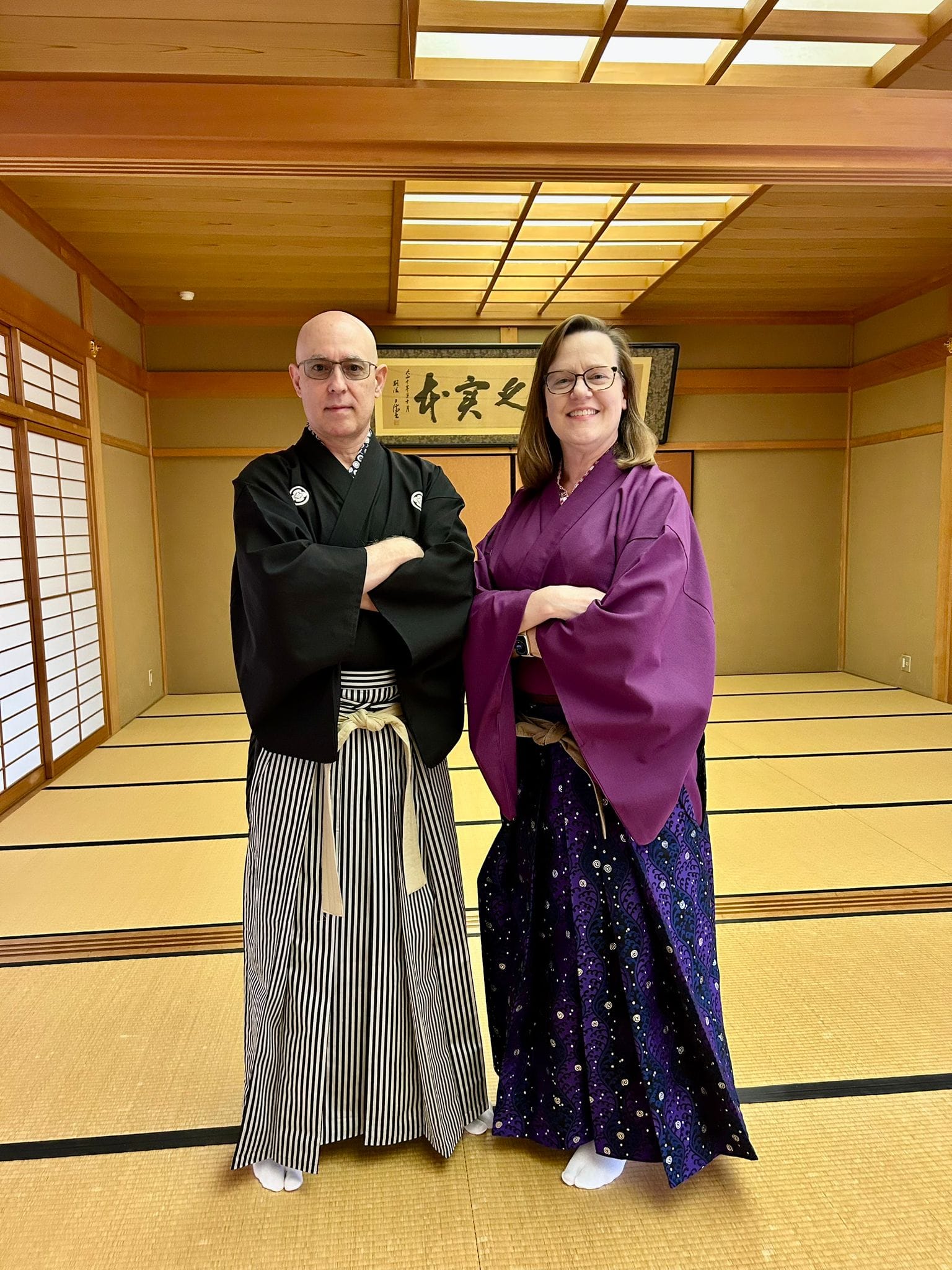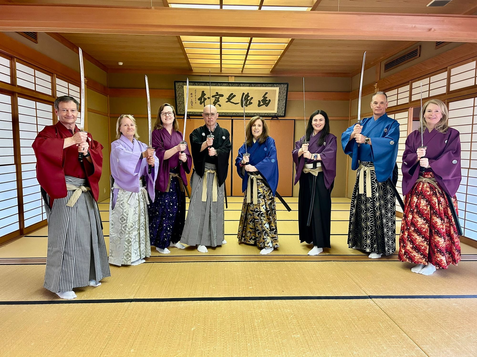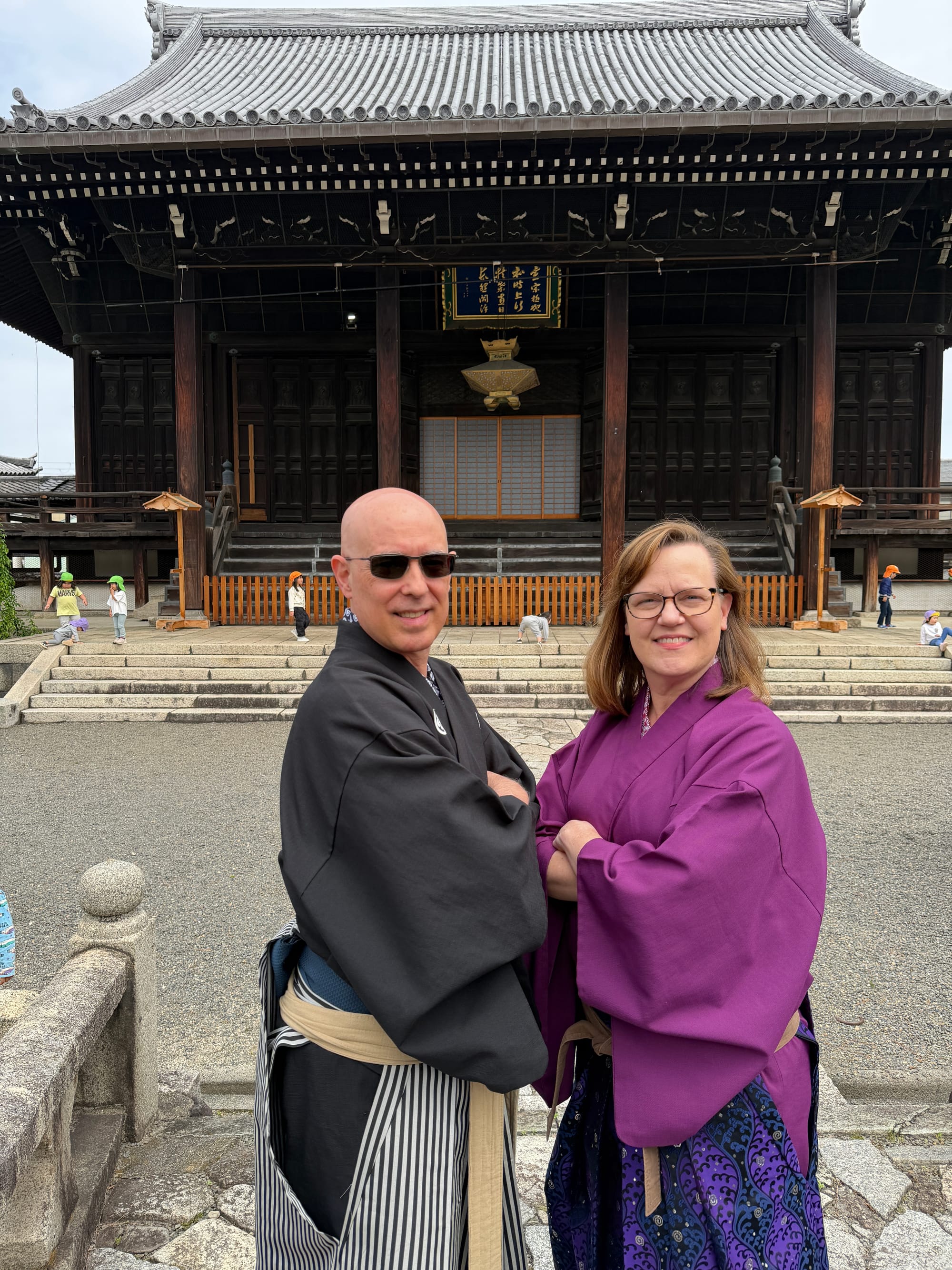 Our planned activities for the day were more on the Zen spectrum. We started the day with a Samurai experience where we learned some facts about how the Samurai lived and then we were dressed up in traditional Samurai clothing and were given lessons on proper sword technique, folding fan technique, and other Kabuki theatre movements. All of this was held in one of the central Kyoto Buddhist temples, in their dojo.