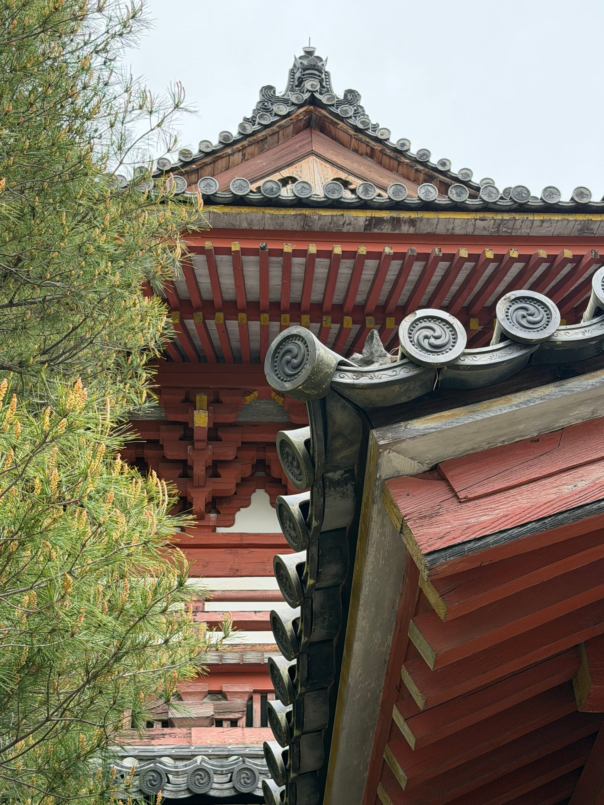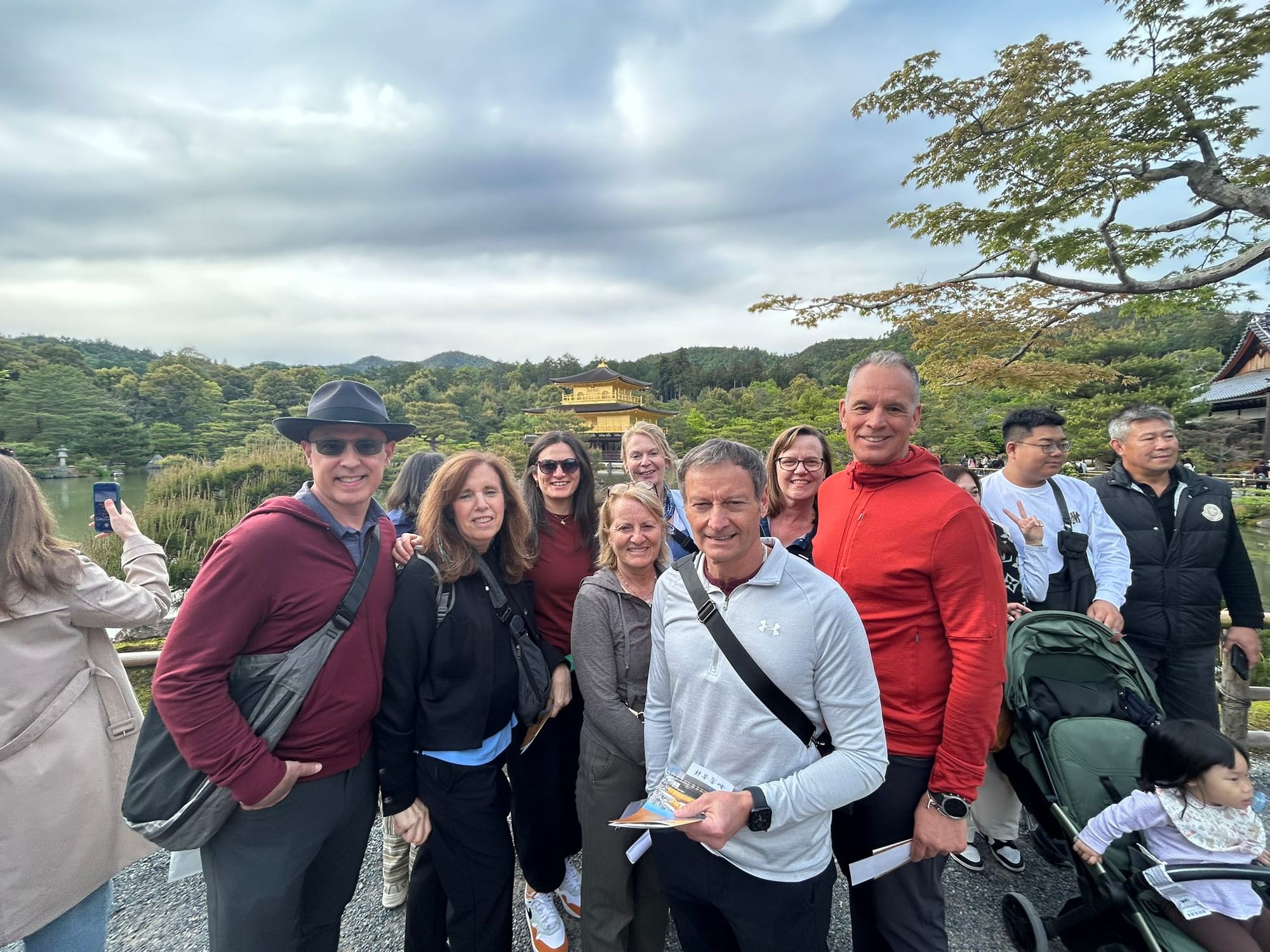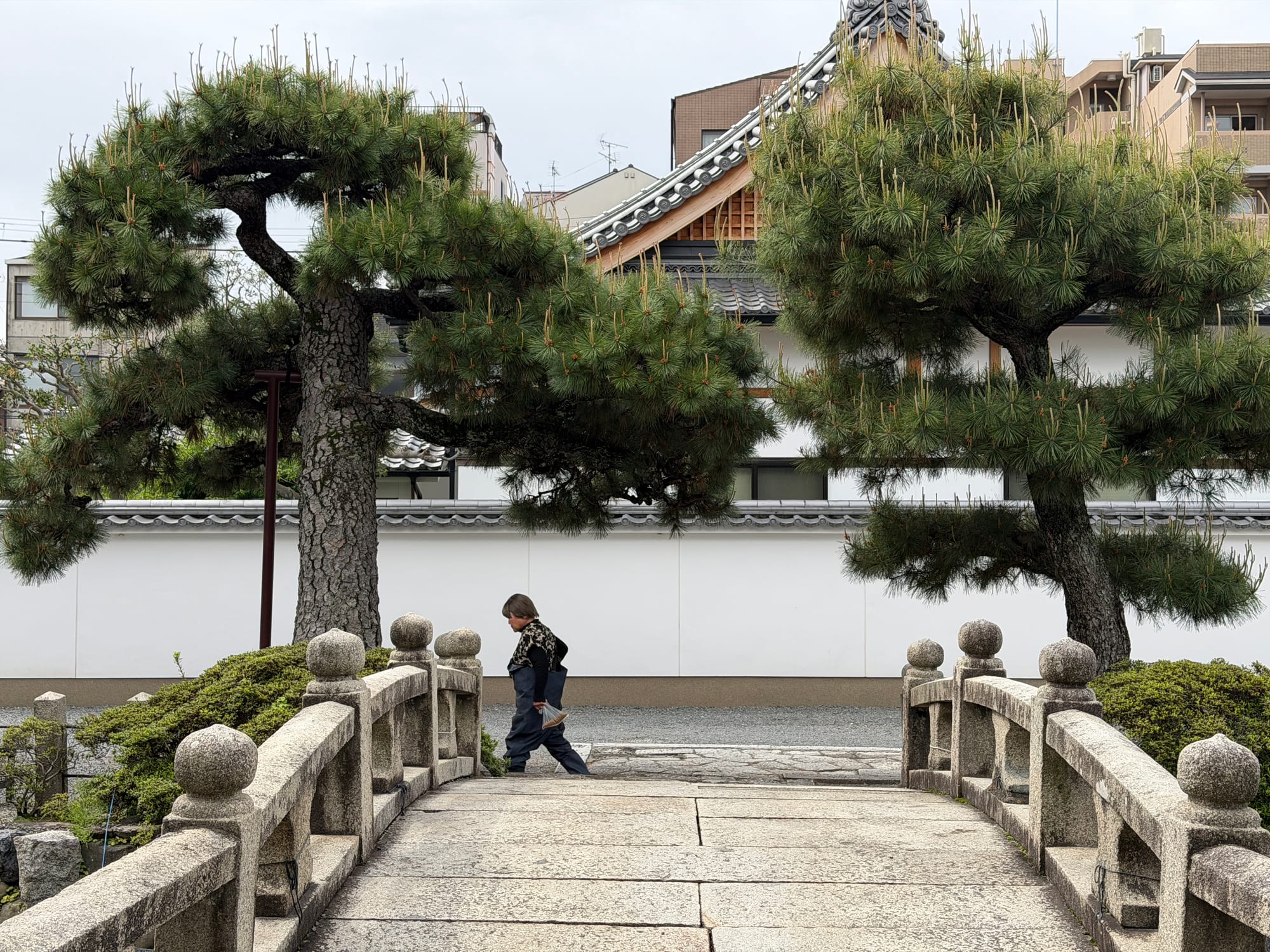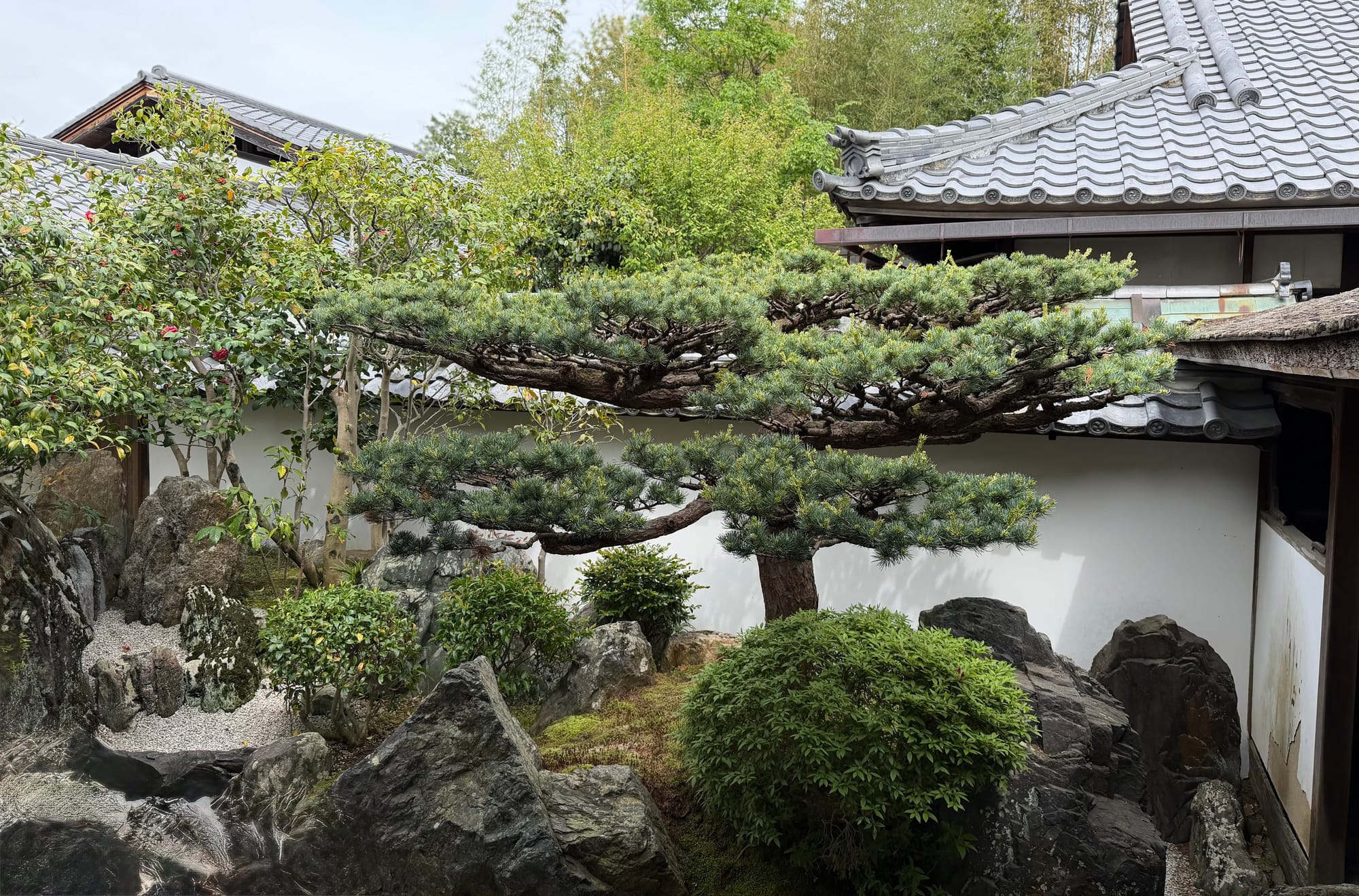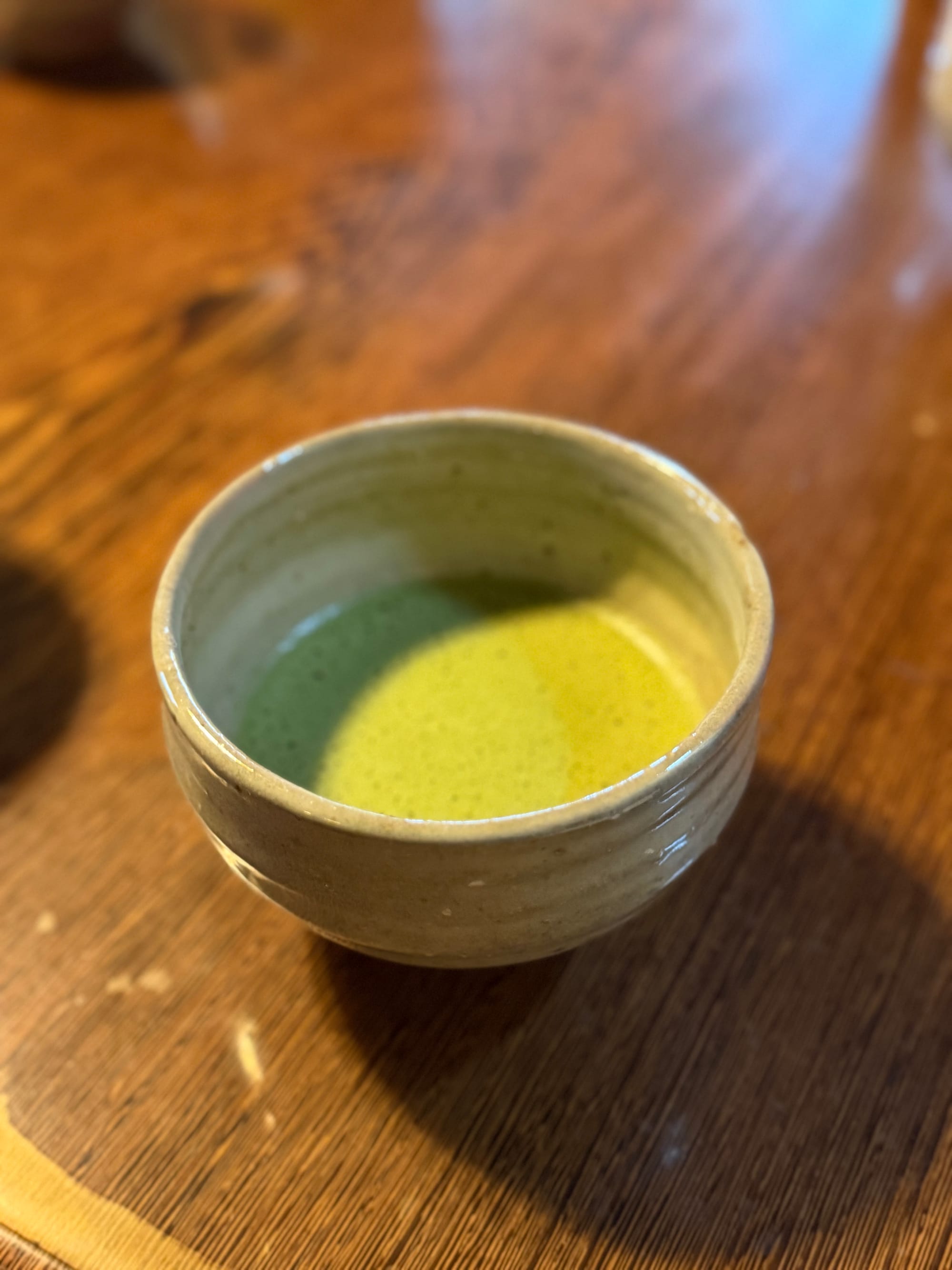 The next visit of the day was at a Buddhist temple. We did a Zen meditation session with one of the monks from the temple. We completed a full 25 minute session that felt like only 10 minutes. After meditation, we practiced Sutra calligraphy. Sutra is a meditative Buddhist practice of transcribing sacred texts with focus and devotion. This practice fosters concentration, calmness, and mindfulness, often using a brush, ink, and traditional paper to copy sutras like the Heart Sutra. Both experiences were both calming and informative. On our way through the temple after meditation we were shown their Zen garden and learned about the story of the garden and what it represented. To finish the experience, we enjoyed a small tea ceremony with our guide. This particular temple was where the monk that created the tea ceremony lived for many years. This temple is still the original build from the 15th century. The tea room we visited was the same room and view as experienced by the monks in the 15th century. Even though you are in the middle of Kyoto, there are no modern builds visible.