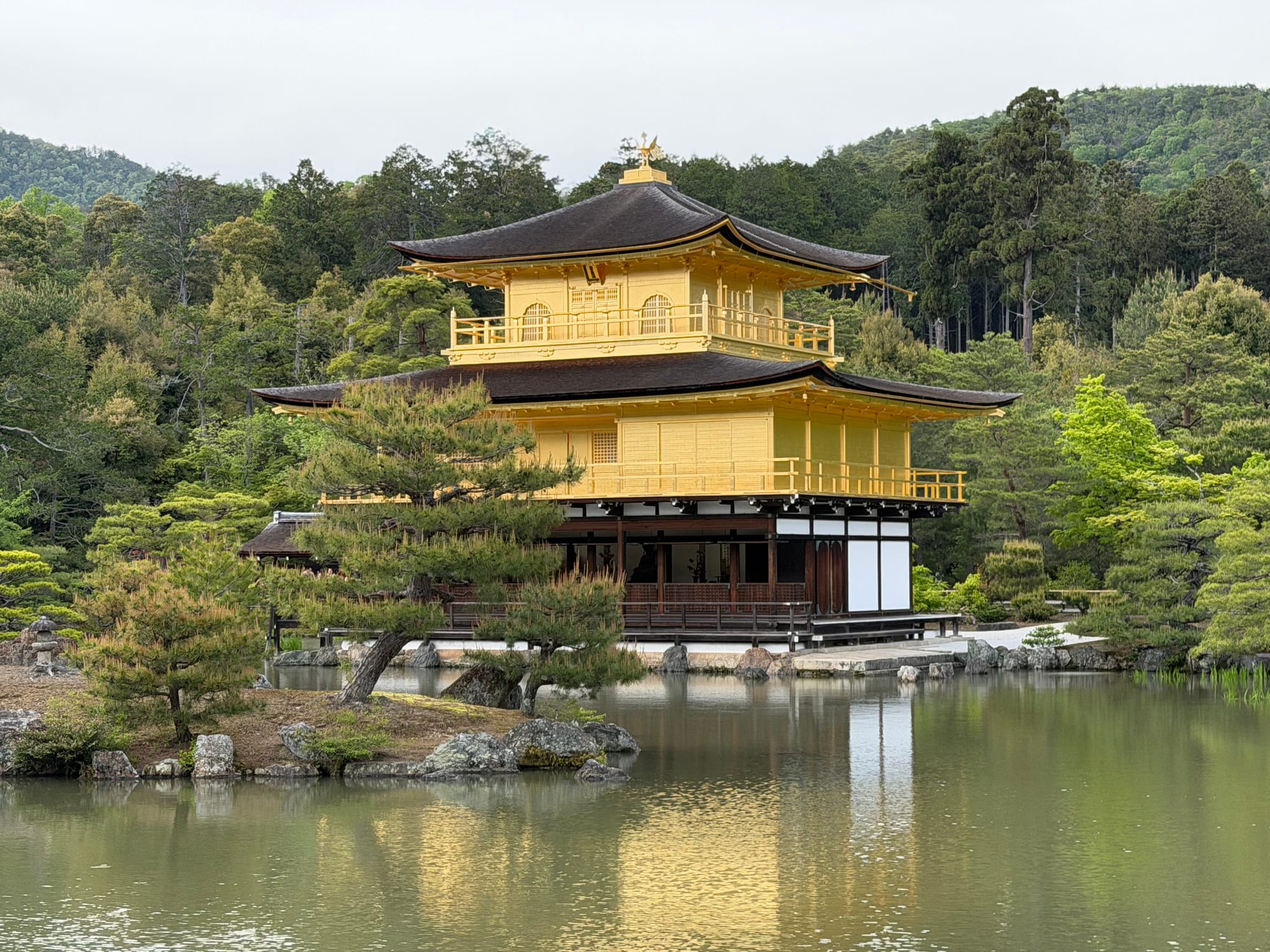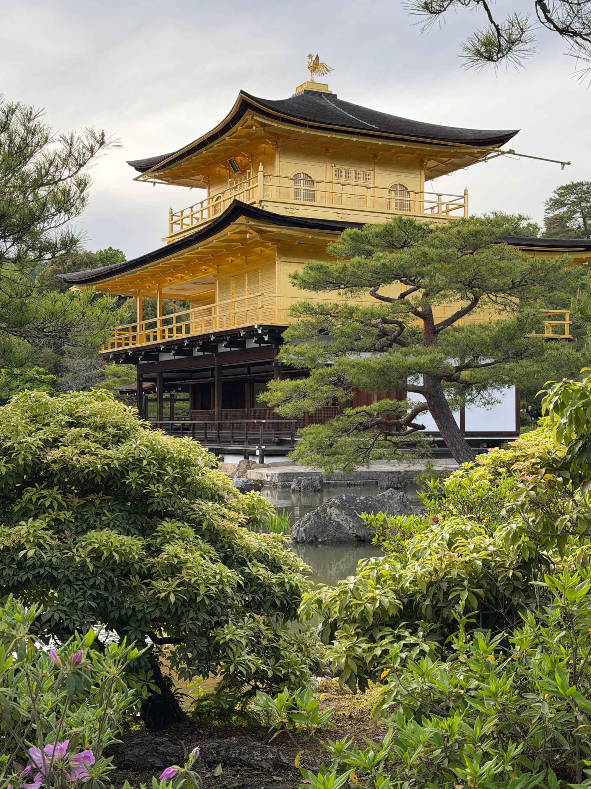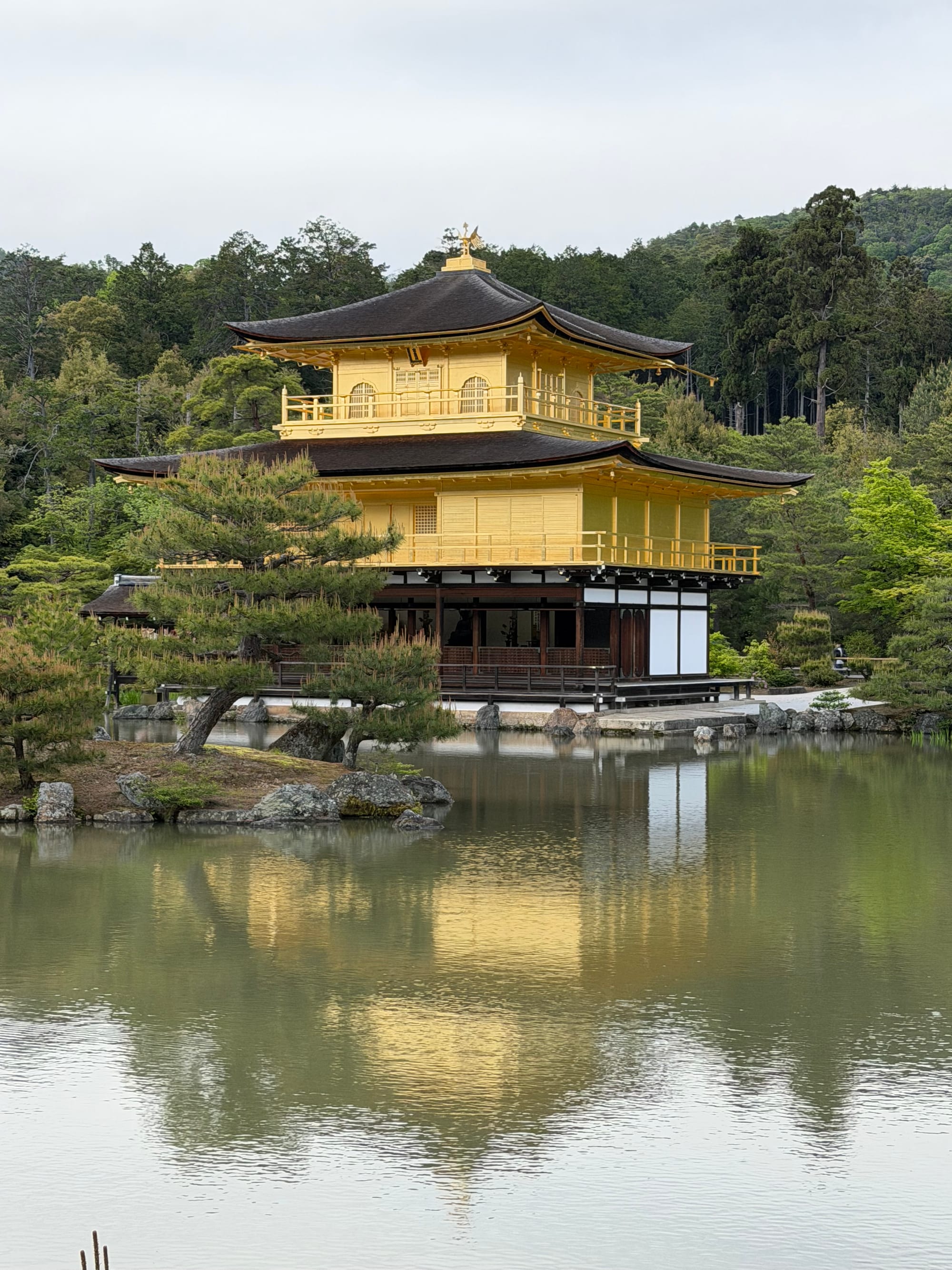 Our last attraction was Kinkaku-ji or Temple of the Golden Pavilion. It’s a Zen Buddhist temple in Kyoto, Japan and a tourist attraction. It is designated as a World Heritage Site, a National Special Historic Site, a National Special Landscape, and one of the 17 Historic Monuments of Ancient Kyoto. The temple is nicknamed after the Golden Pavilion whose top two floors are coated in 0.5 μm gold leaf. The current pavilion was rebuilt in 1955 after being destroyed in an arson attack. The gold leaf came from the region in Kanazawa we visited earlier in the trip.