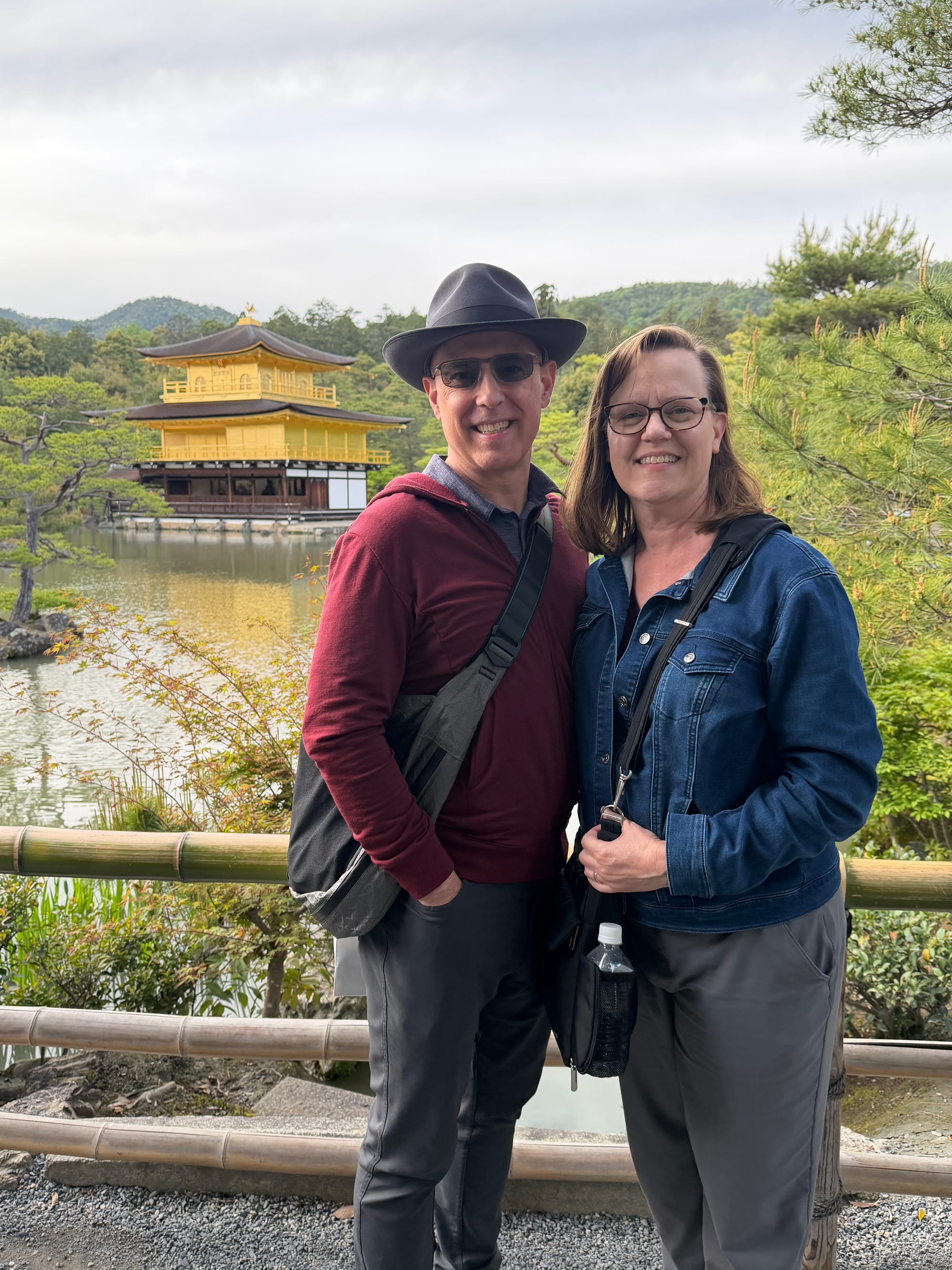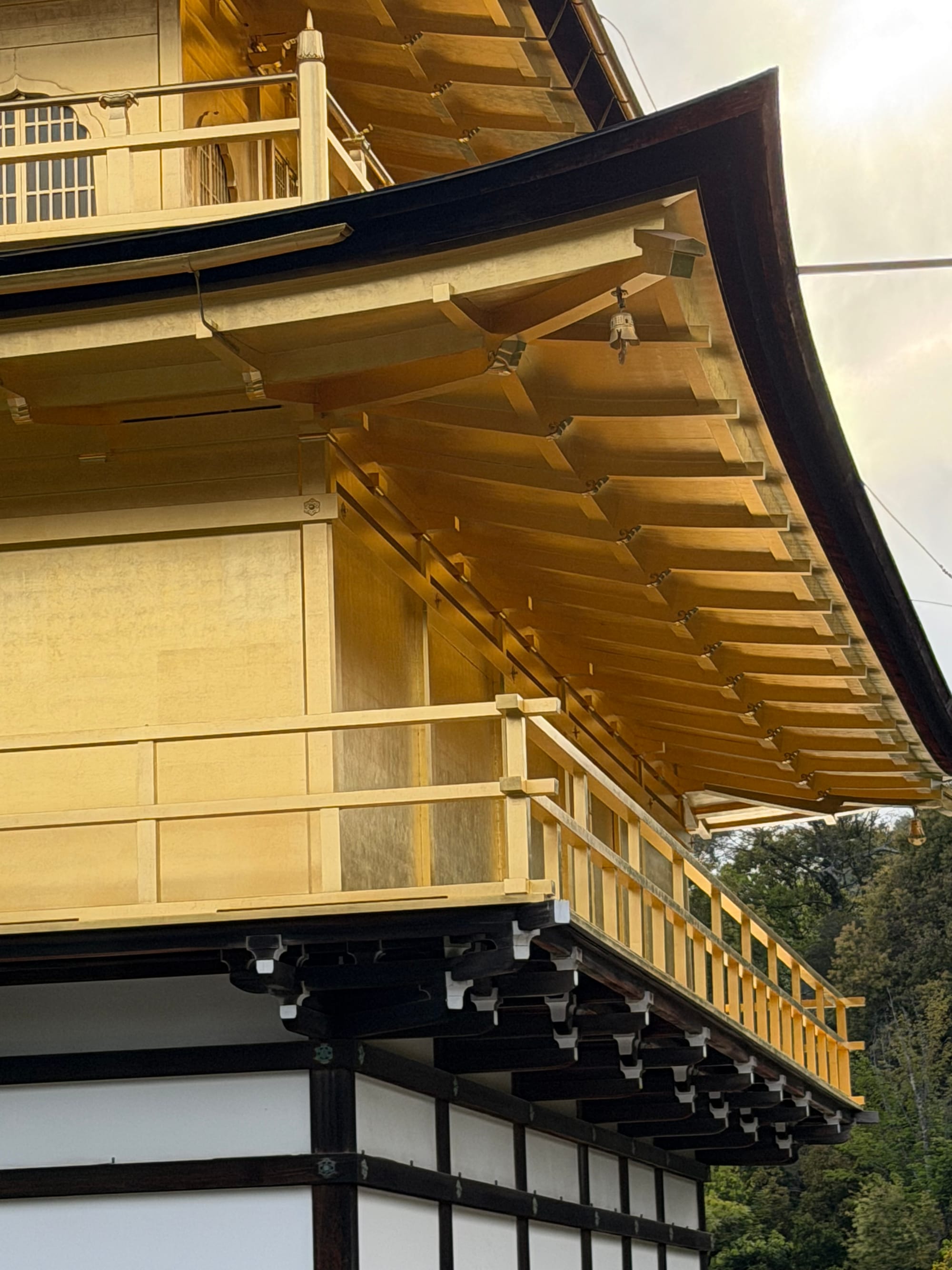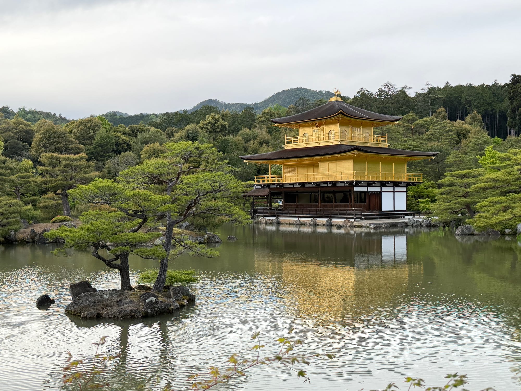 Our last attraction was Kinkaku-ji or Temple of the Golden Pavilion. It’s a Zen Buddhist temple in Kyoto, Japan and a tourist attraction. It is designated as a World Heritage Site, a National Special Historic Site, a National Special Landscape, and one of the 17 Historic Monuments of Ancient Kyoto. The temple is nicknamed after the Golden Pavilion whose top two floors are coated in 0.5 μm gold leaf. The current pavilion was rebuilt in 1955 after being destroyed in an arson attack. The gold leaf came from the region in Kanazawa we visited earlier in the trip.