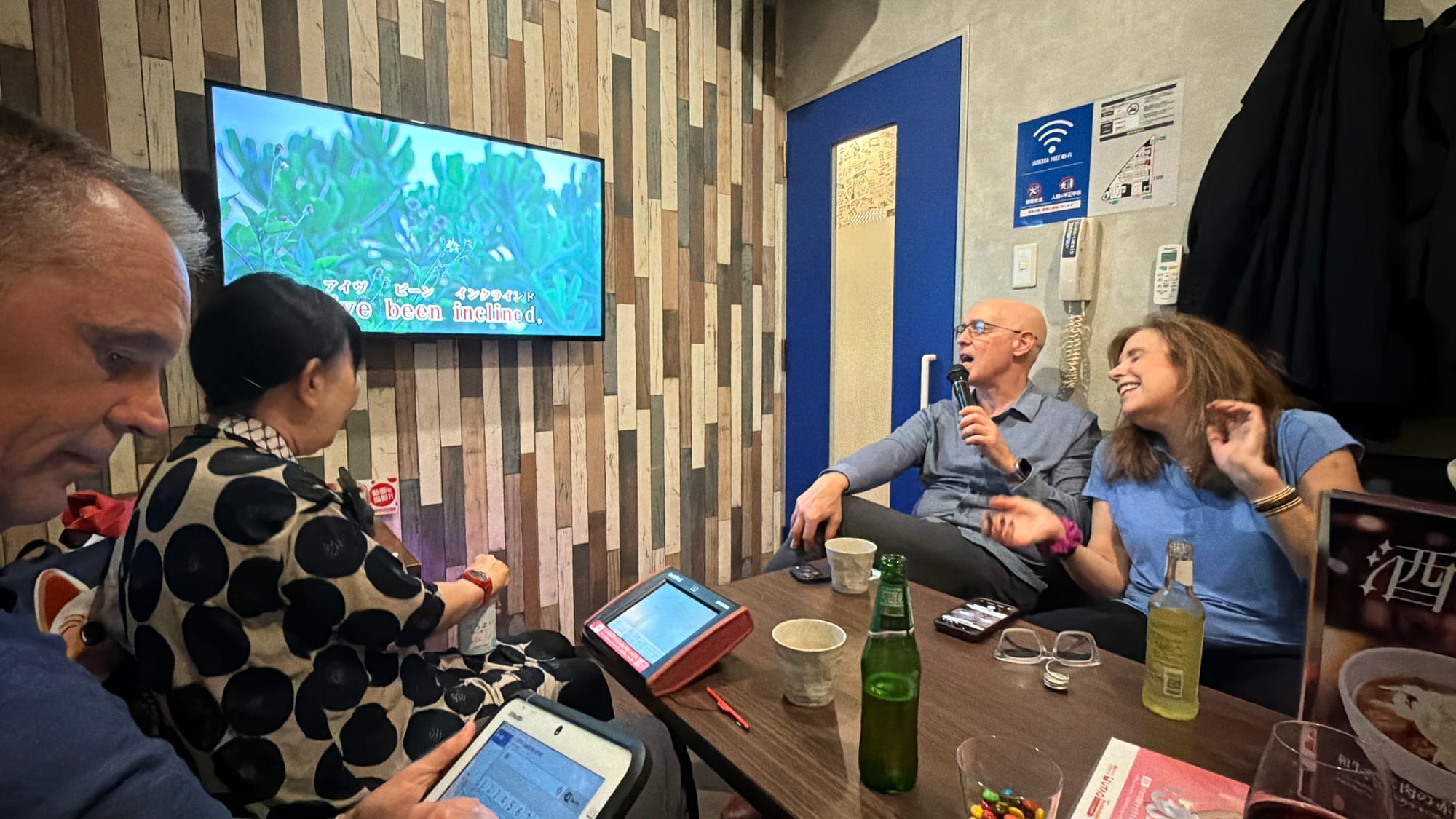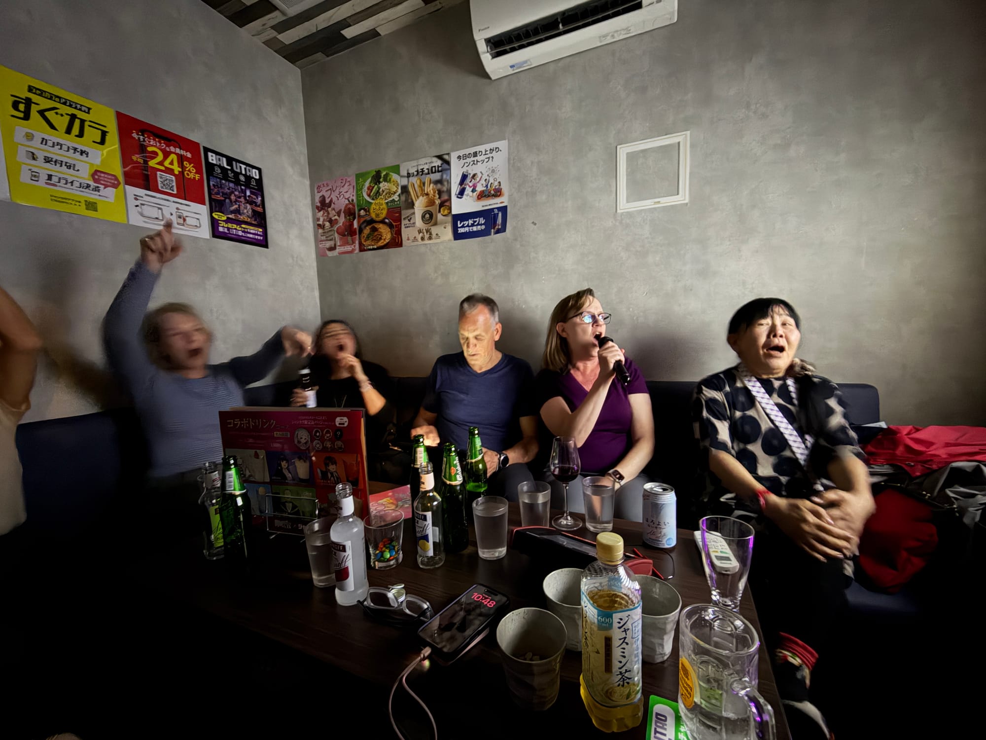 To end the trip, we had our final group dinner at, of all things, an Italian restaurant. The restaurant overlooked the Sky Pavilion and had a great view of Kyoto tower. After dinner, we had to check off one very Japanese experience, Karaoke. At this location, you rent the room and pay a per head fee for all you can eat snacks and drinks. On the floor where we had a room, there were 40 karaoke rooms and many more on the next floor. It was quite the experience to walk down the hallways of all of the rooms listening to everyone sing their hearts out. Of course, we had to break out the stereotypical Bon Jovi, Neil Diamond, The Beatles, and other songs everyone knows.