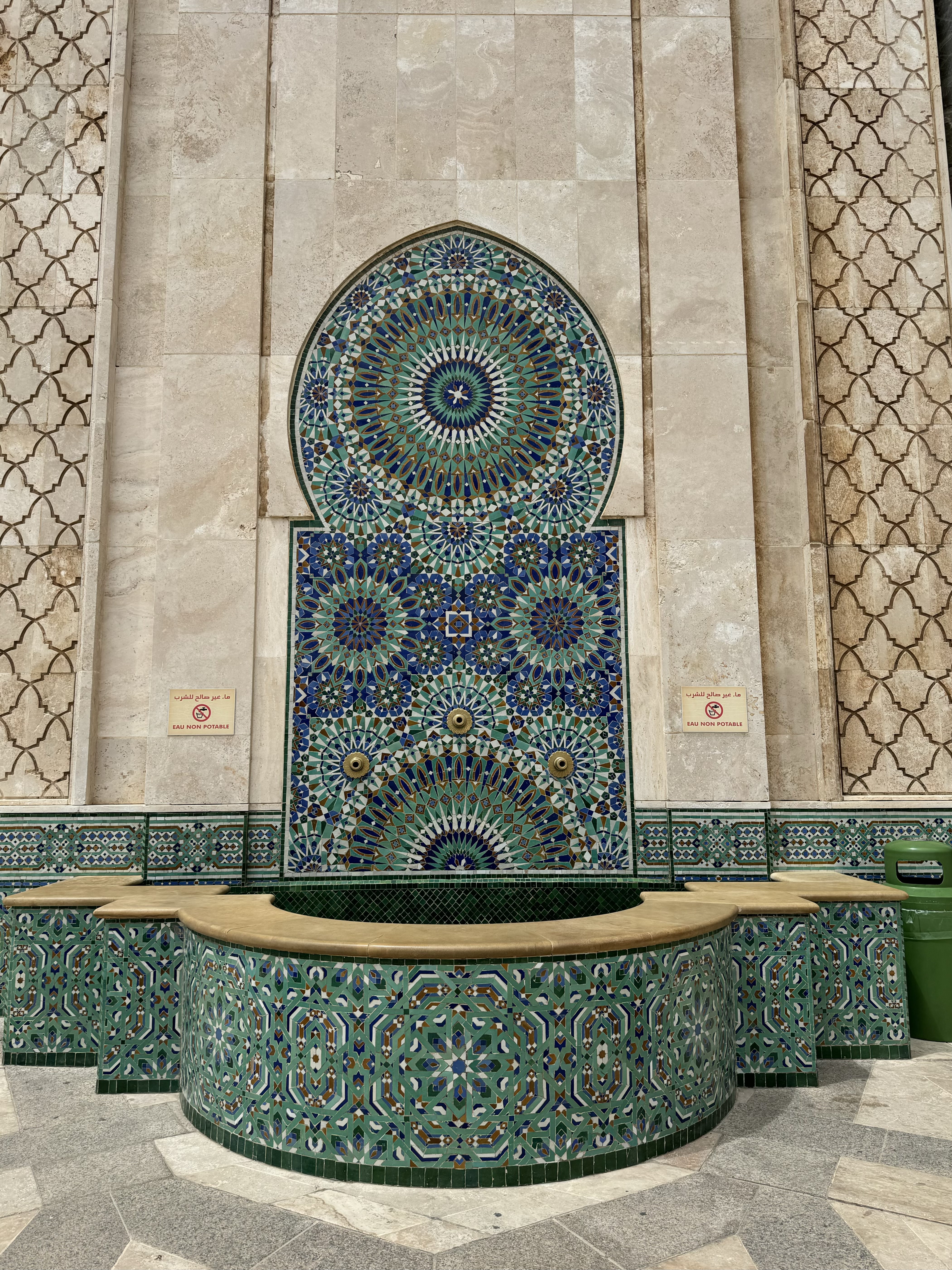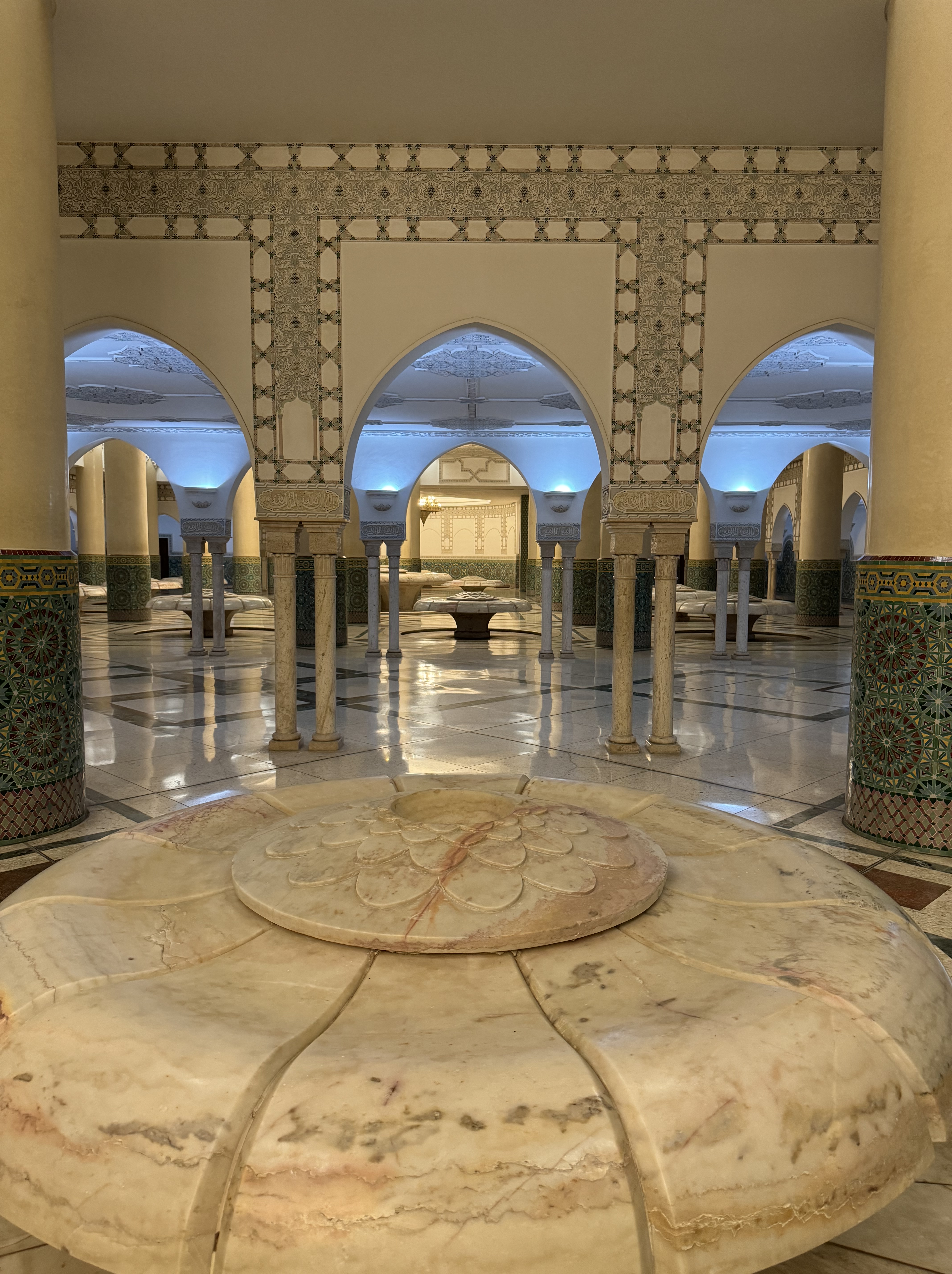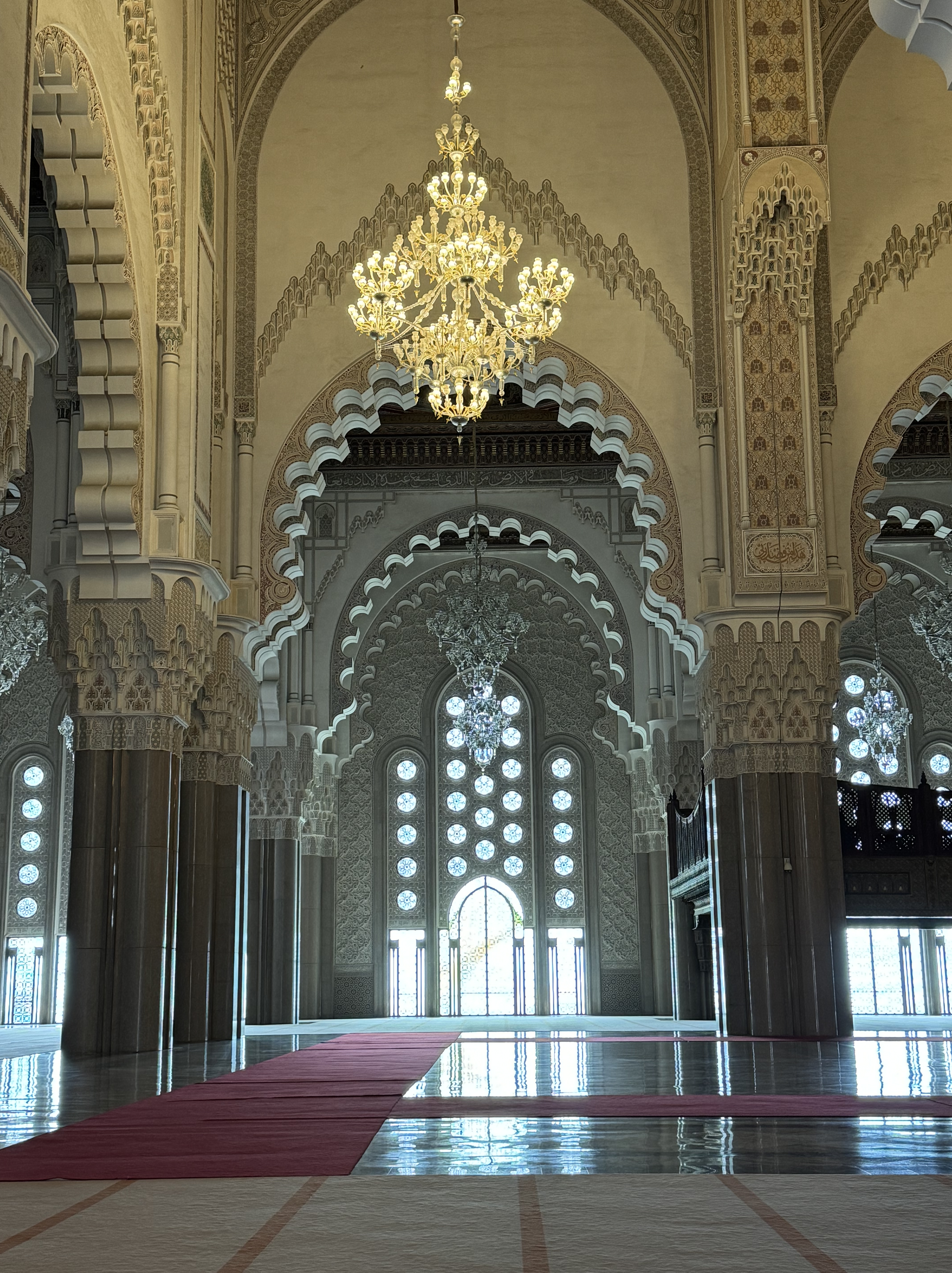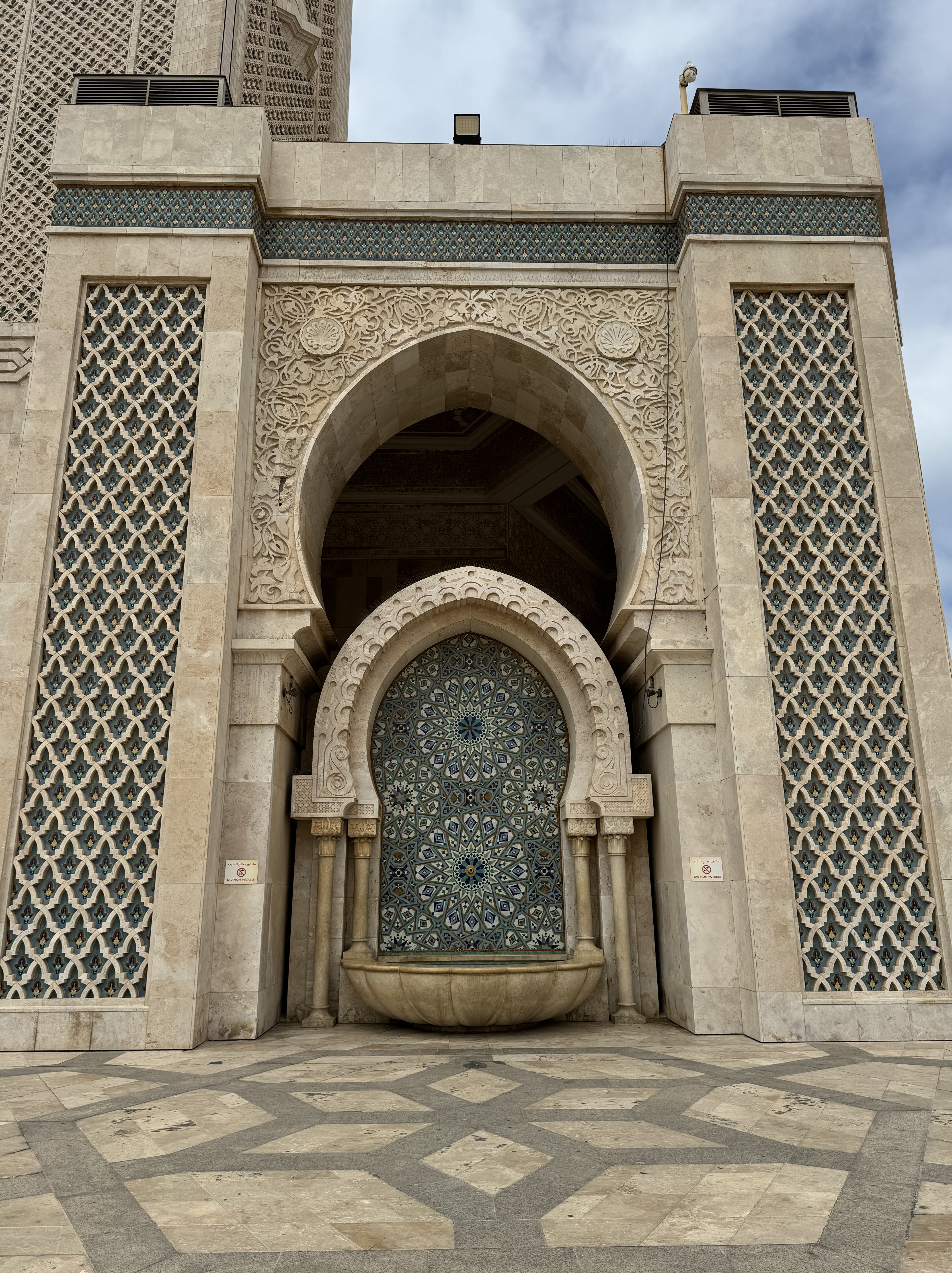 Along the way we stopped in Rabat, Morocco’s capital, to quickly look at the architecture and then stopped in Casablanca for lunch. While in Casablanca we visited Hassan II Mosque. It is the second largest functioning mosque in Africa and is the 14th largest in the world and has the world’s second tallest minaret. A maximum of 105,000 worshippers can gather together for prayer: 25,000 inside the mosque hall and another 80,000 on the mosque's outside ground. It has a roof that is retractable to allow in sunlight and to help ventilate the space when there are many worshipers inside.