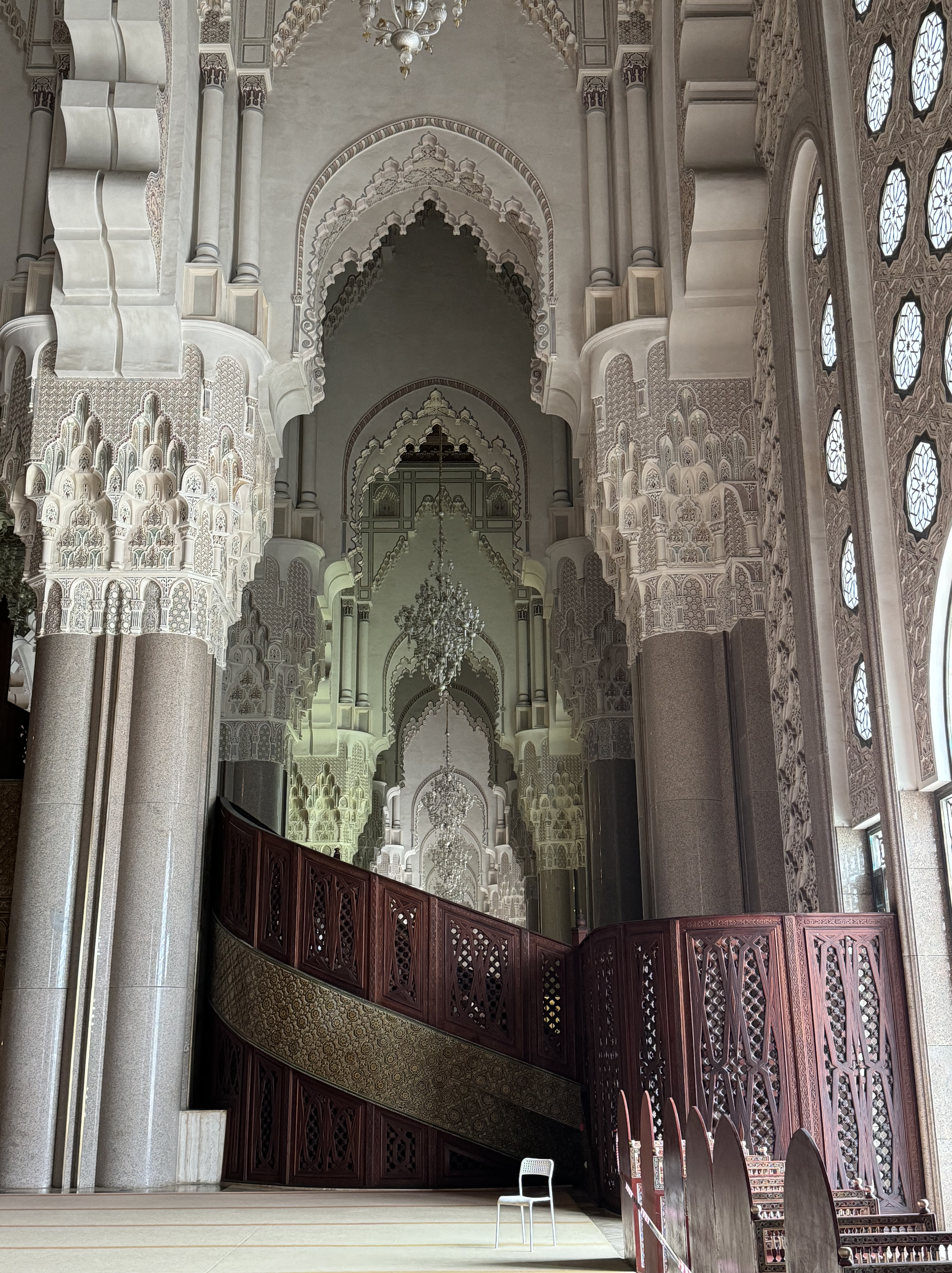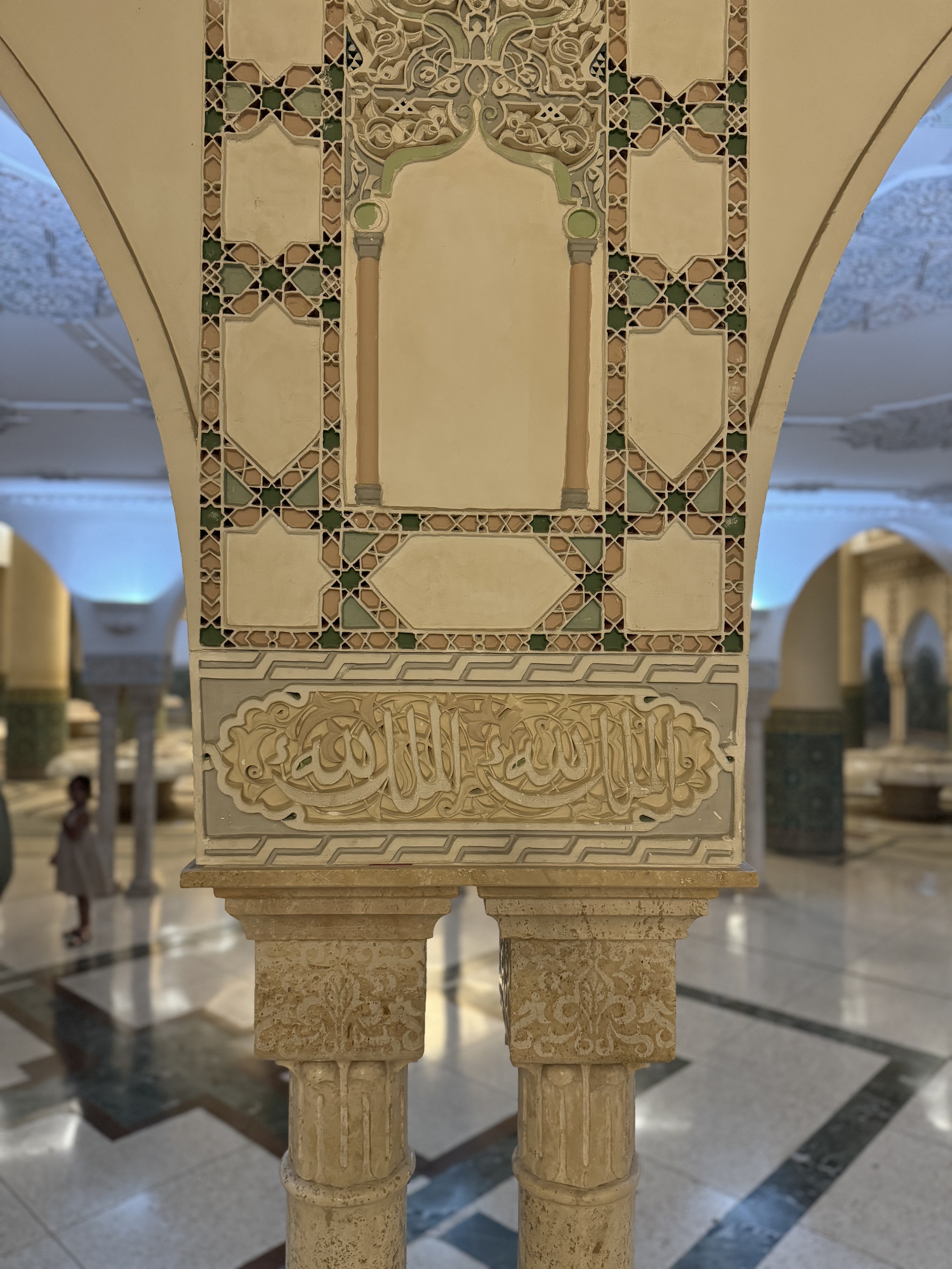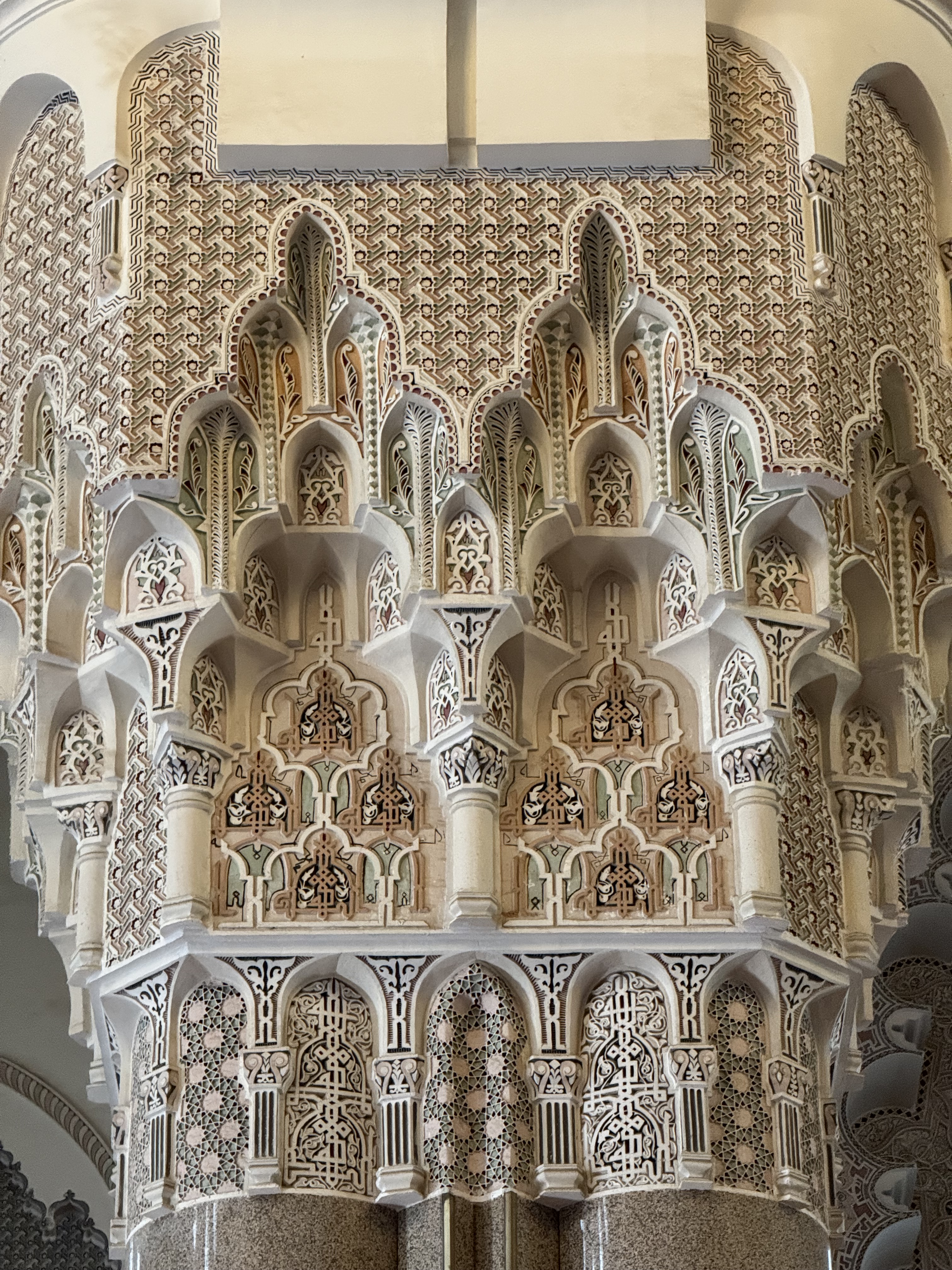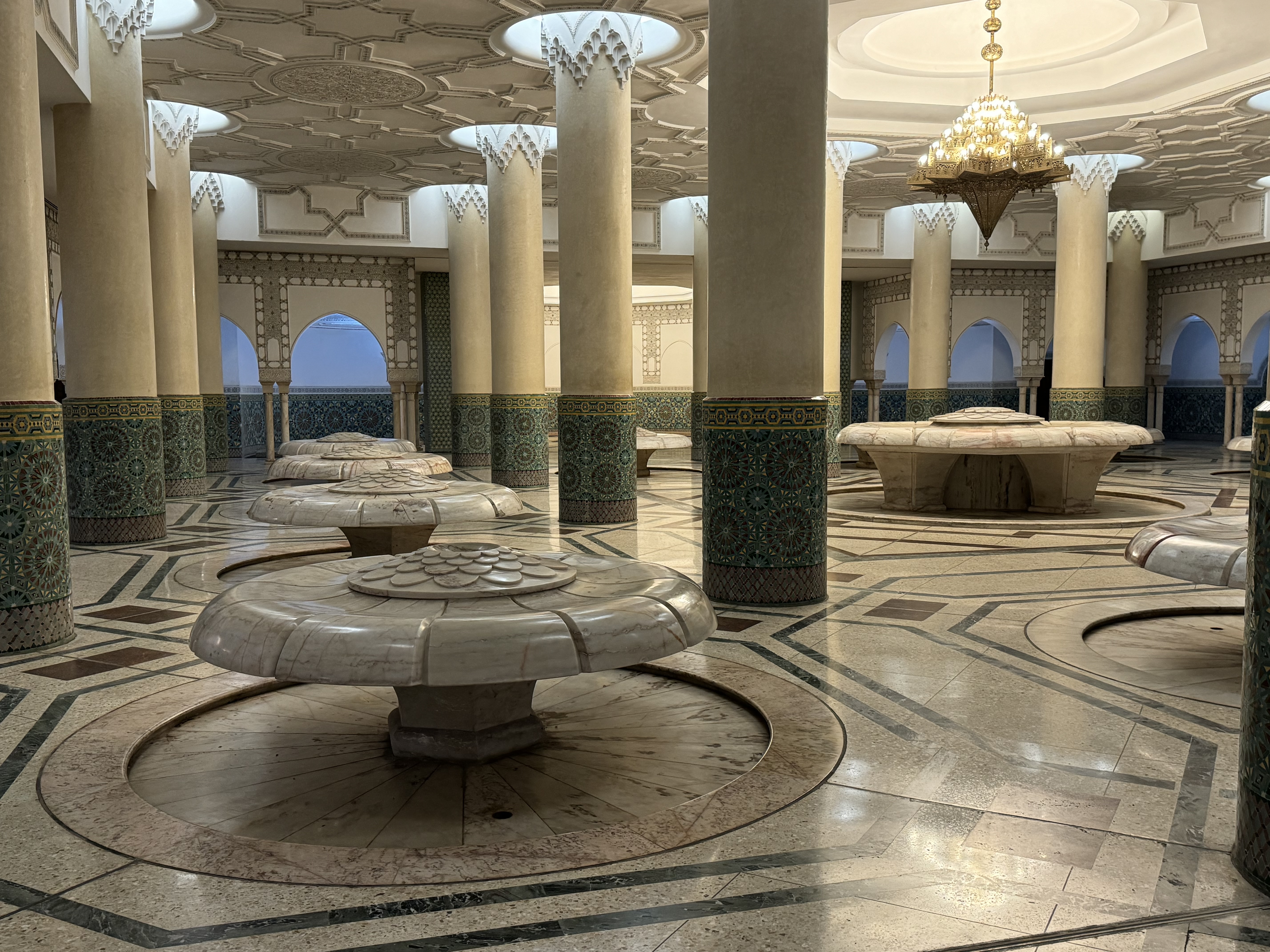 Along the way we stopped in Rabat, Morocco’s capital, to quickly look at the architecture and then stopped in Casablanca for lunch. While in Casablanca we visited Hassan II Mosque. It is the second largest functioning mosque in Africa and is the 14th largest in the world and has the world’s second tallest minaret. A maximum of 105,000 worshippers can gather together for prayer: 25,000 inside the mosque hall and another 80,000 on the mosque's outside ground. It has a roof that is retractable to allow in sunlight and to help ventilate the space when there are many worshipers inside.