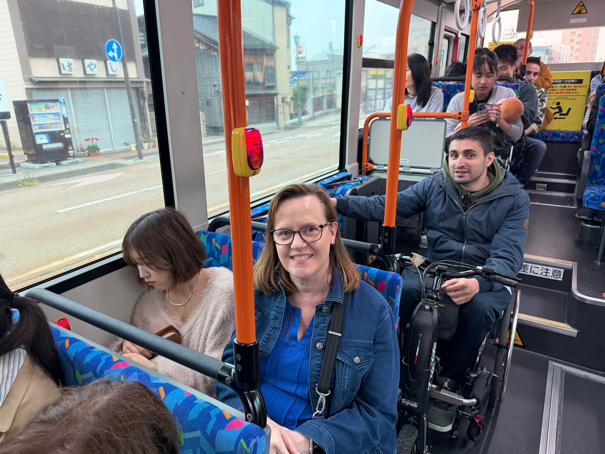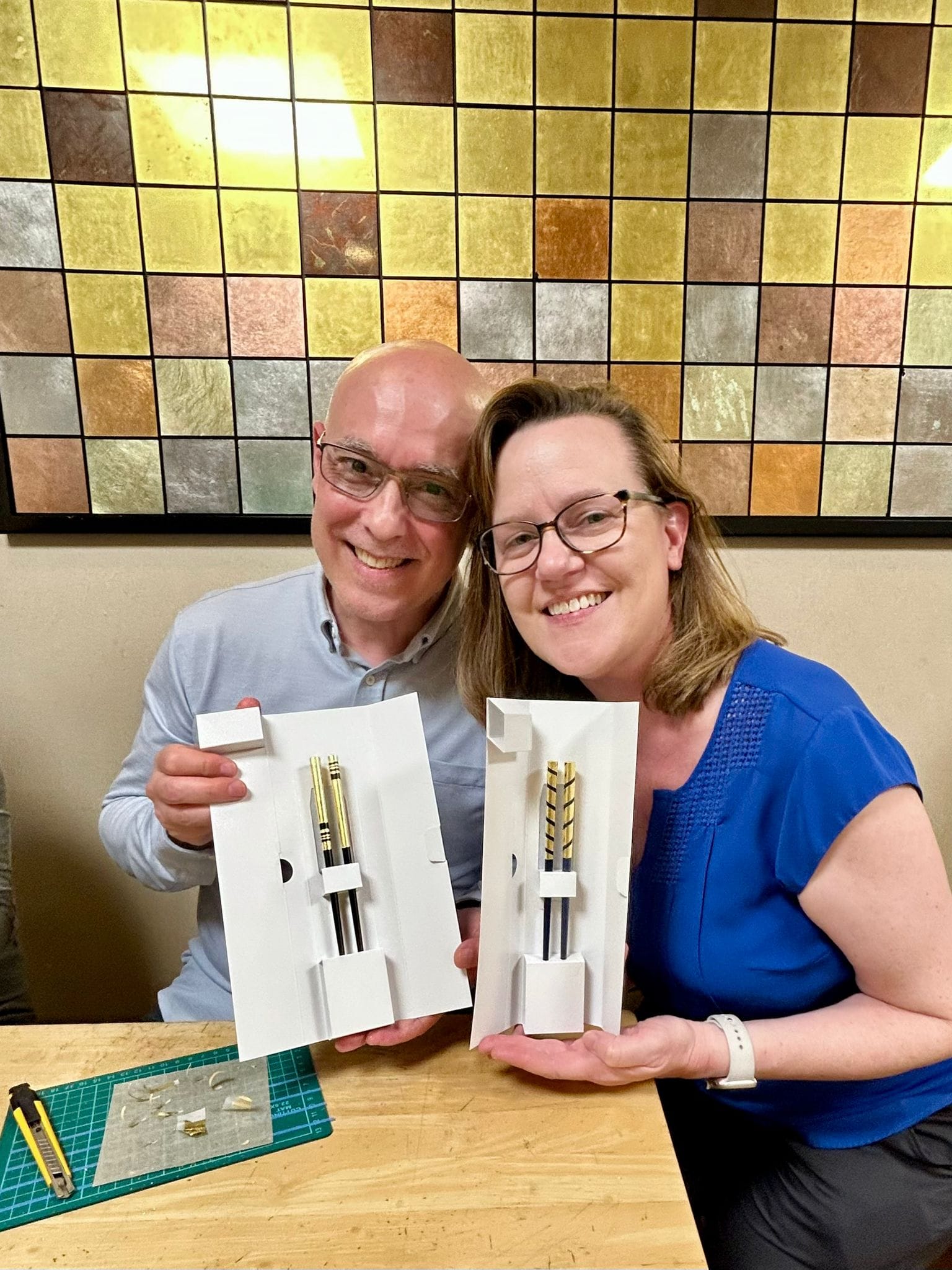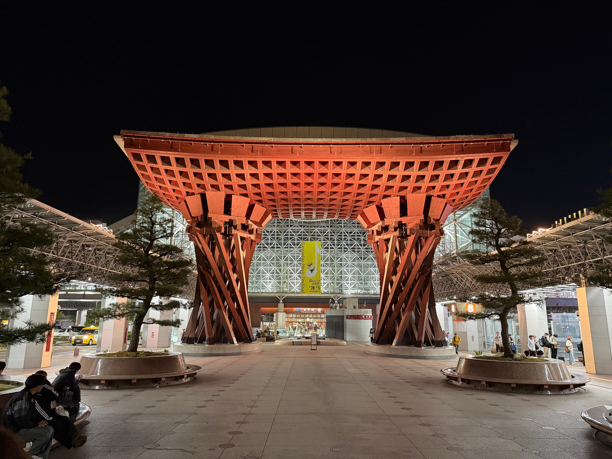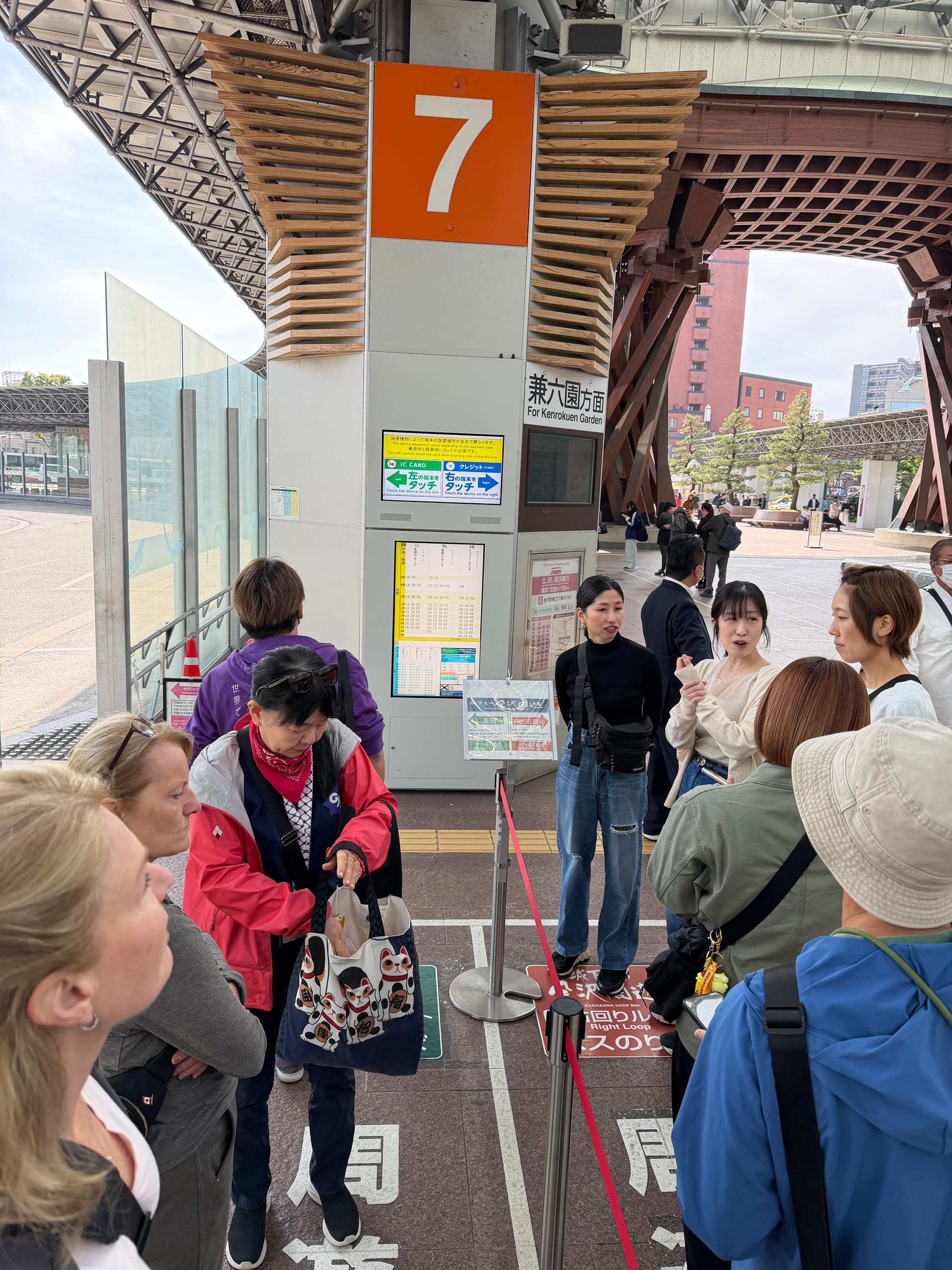 We had a planned gold leaf activity this afternoon. Kanazawa is known for gold leaf because it produces 99% of Japan's gold leaf. Gold leaf is used not only for decoration such as at the famous Kinkakuji Temple in Kyoto (we will visit later in our trip), but now also in cooking and sweets. Soft-serve ice cream wrapped in a whole sheet of gold leaf is unique to Kanazawa. We were able to experience working with gold leaf by creating a design on a set of chopsticks and then using gold leaf to decorate our chopsticks with that design. After some walking around and browsing the gold leaf shops, we took the local bus back to the hotel.