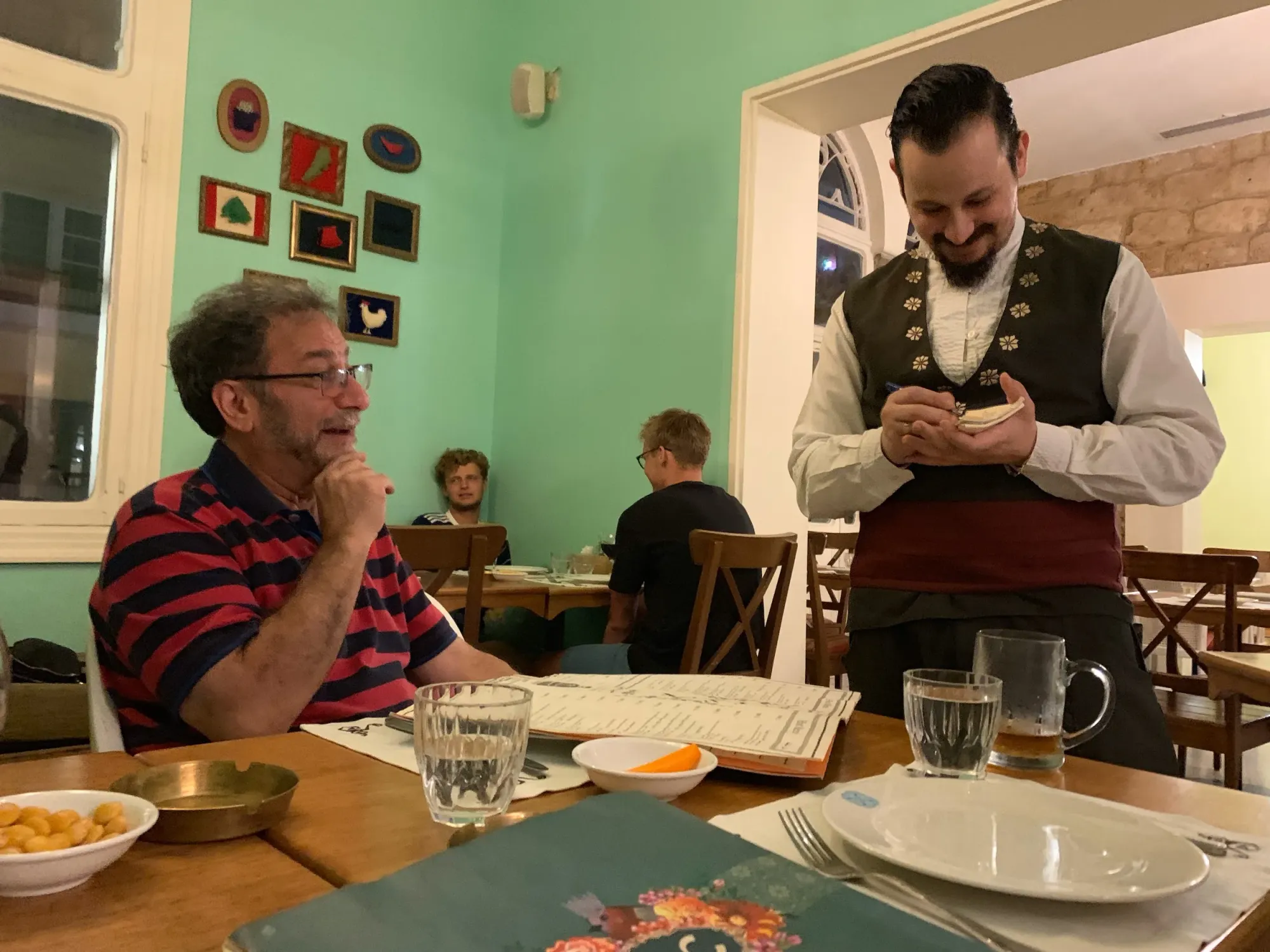 Finally Ismat showed us some mercy and took us to a place for minted lemonade. Along the way David showed off his football and foosball skills.