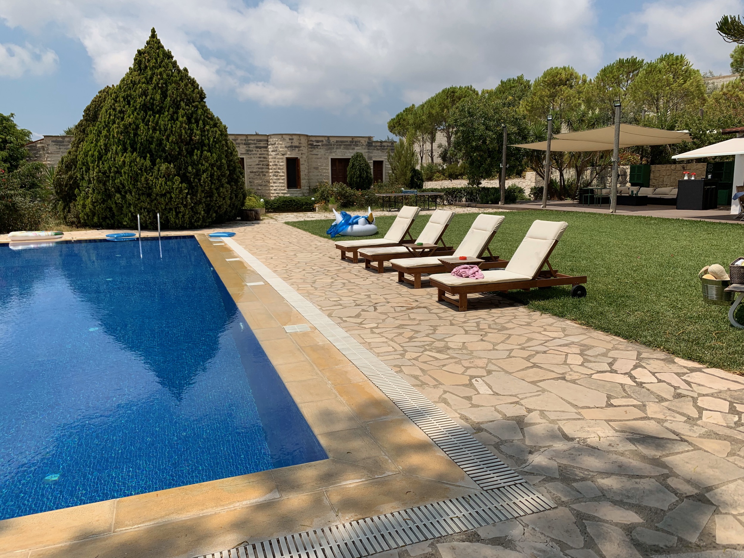 Super chilled out morning with our normal breakfast at the hotel and then chilling out for a few hours. We headed up for an early lunch (2pm) at Mazen and Hibba's house, one of the couples we met for dinner the night before. They have an amazing house with a pool and olive trees that they harvest to produce olive oil. Hibba, the wife is one of five sisters and they are very close. When you meet each of them, they will tell you THEY are the best sister of the group. Three of the five sisters and their families joined us for lunch. We missed the big family party that happens on Sunday. We were offered more and more food from one sister to the next. We waddled out of there because Ismat, The Fixer, had a plan.