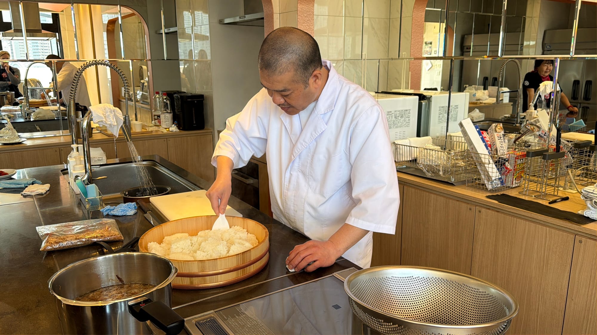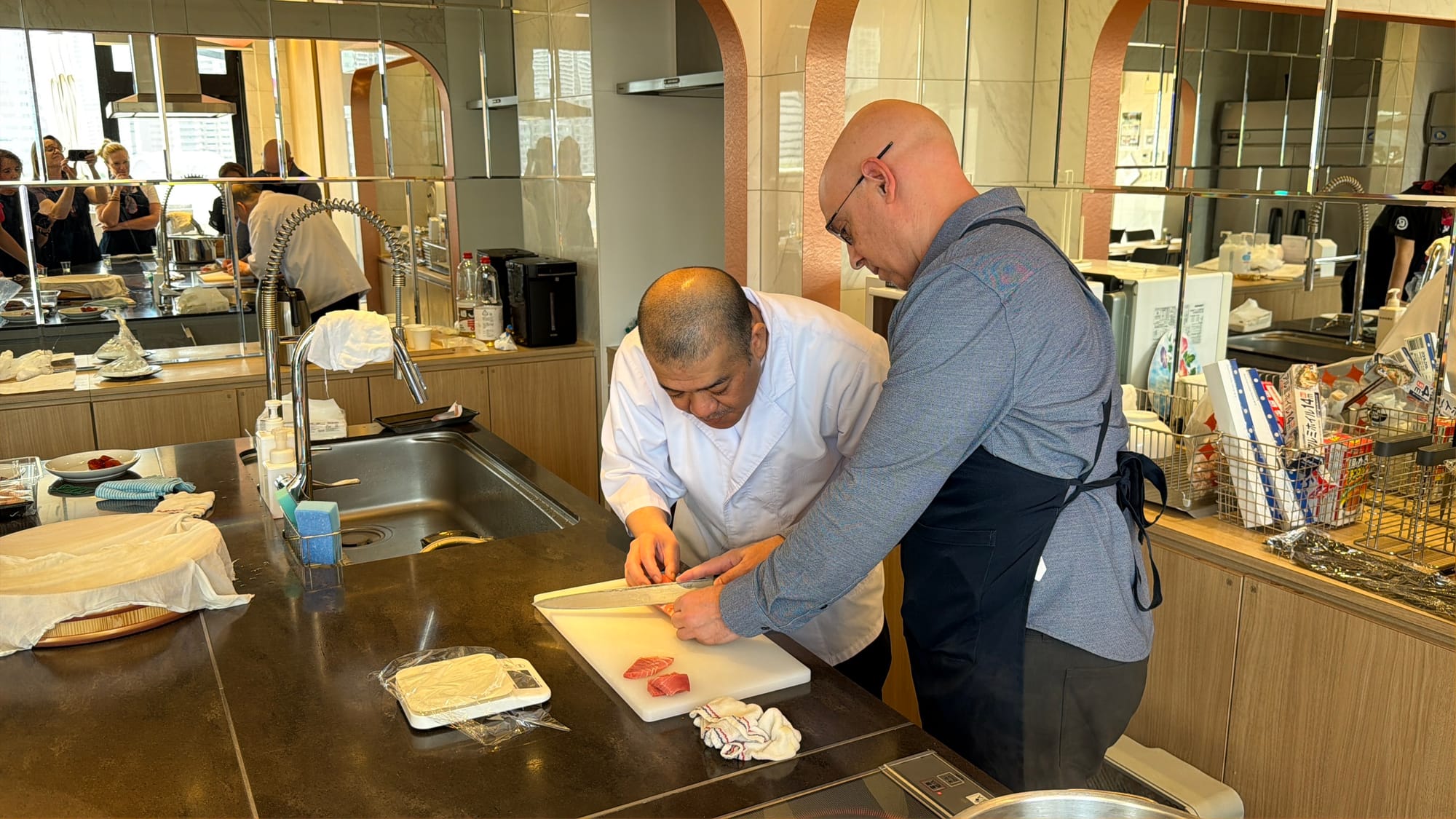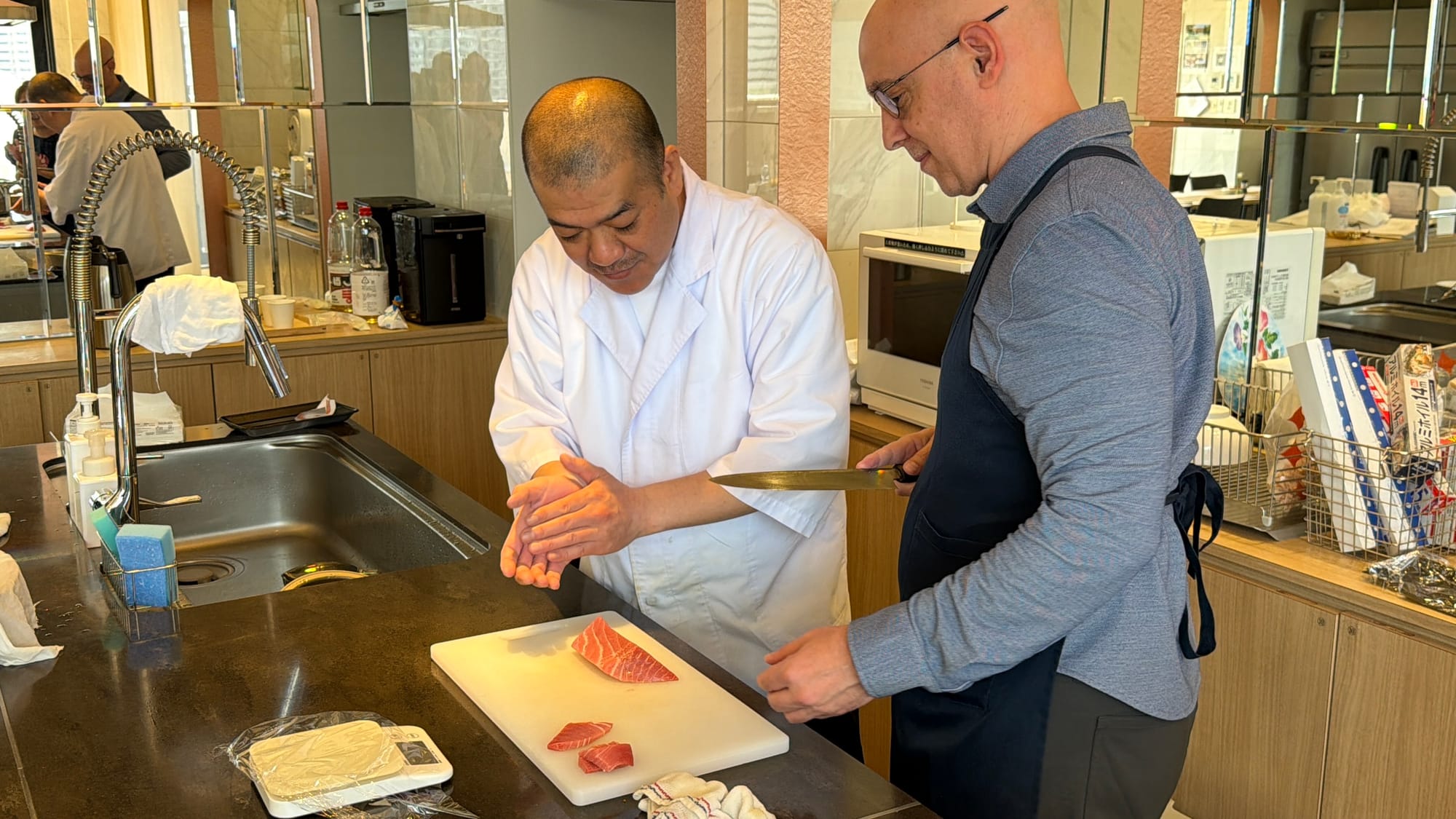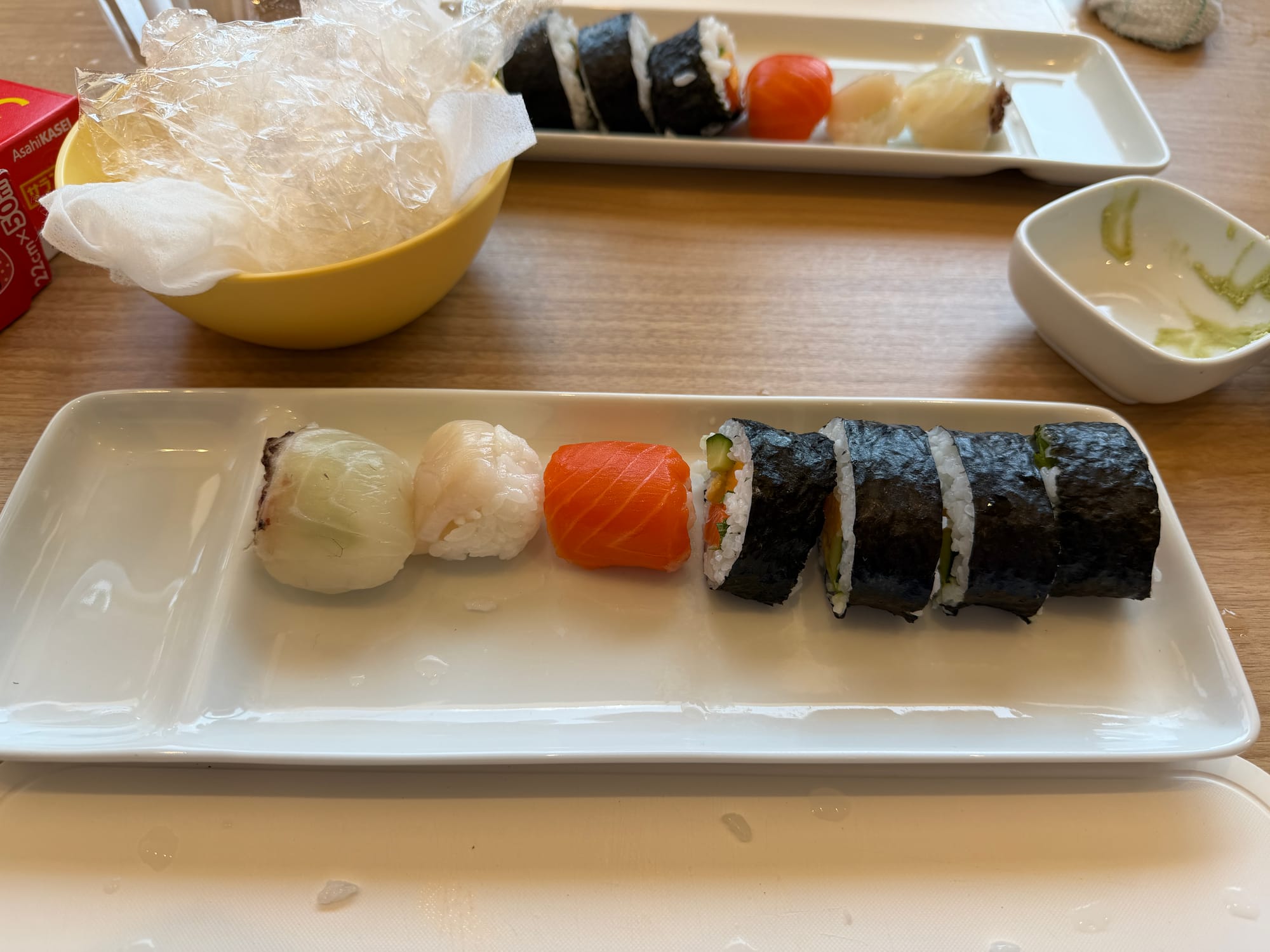 This morning our planned event was sushi making. We were taken back to the market for a guided walkthrough and purchased the fish and other ingredients we would use in our sushi making class. We were taught by a master sushi chef with 35 years experience and the translator. During the class, we learn about making miso soup, how to prepare the sushi rice, and the proper technique for cutting fish for different sushi preparations. We were given step-by-step instructions while making four different styles of sushi. They also provided us with pickles we selected in the market and some blow fish we found at one of the vendors. We asked how poisonous the blow fish is if the poisonous part was eaten. After some back and forth with the vendor the only thing our guide would say was, “Just don’t!” Though Laurie is not a fan of any type of seafood, she did a great job eating some of the sushi she made.