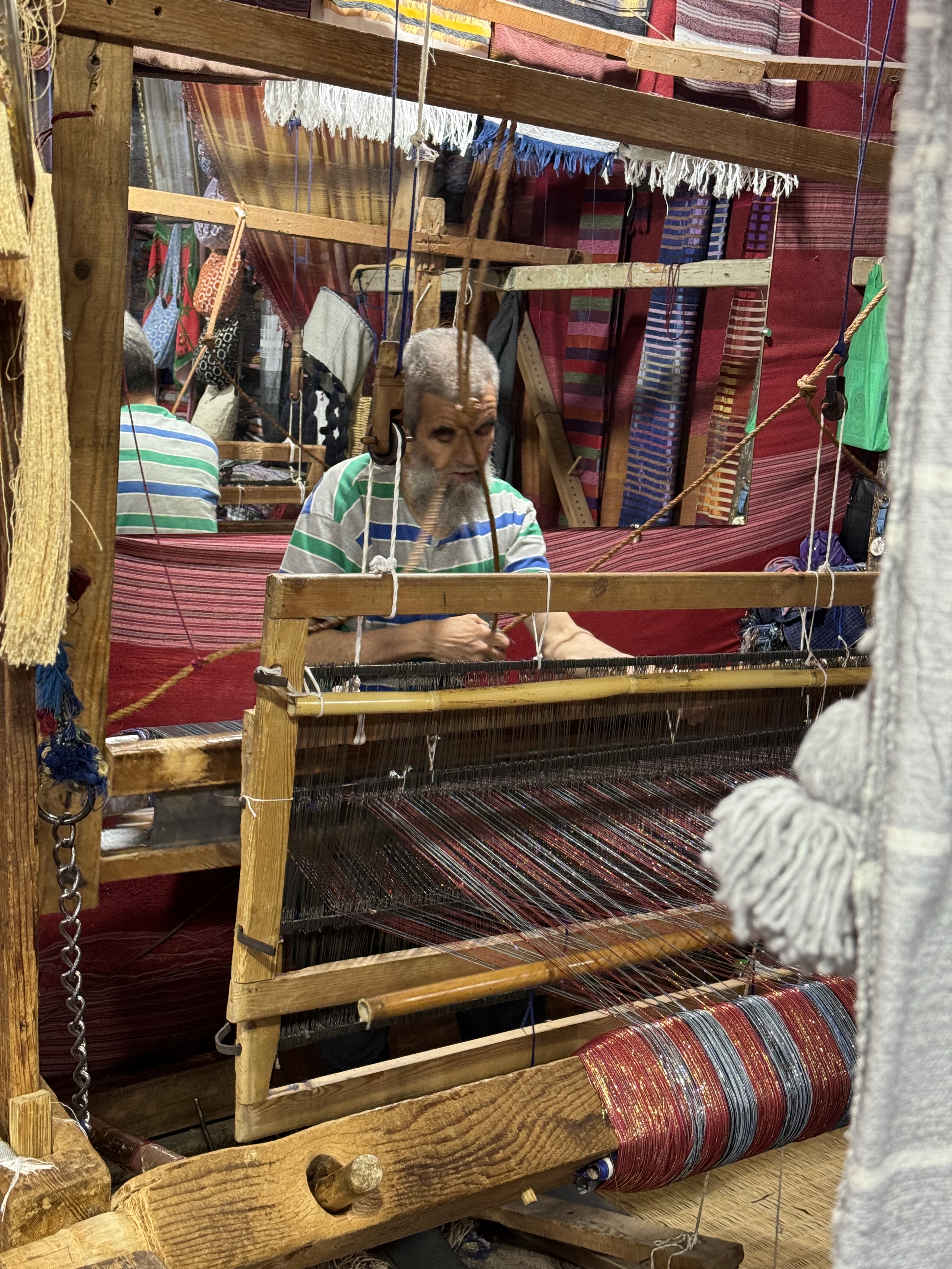 Today we explored Fes with a local guide. We started at the Royal Palace, then visited the old Jewish quarter, followed by a scenic overlook, and then stopped by a ceramics school that attracts students from all over the world. Finally, we explored the old Medina. The Medina is so complicated and convoluted that a local guide is required. There is no way anyone could navigate the over 9,400 streets and alleyways if they did not already know the layout. The Medina is a self-sustaining city within a city. It was founded between 789 and 808 A.D. and is considered as one of the most extensive and best conserved historic towns of the Arab-Muslim world. Inside the Medina you can find schools, fondouks (mediaeval building designed as an urban hostel for commercial travellers and merchants), palaces, residences, mosques (over 300), fountains, and any type of merchant, store, or craftsperson you think of, even a camel butcher.