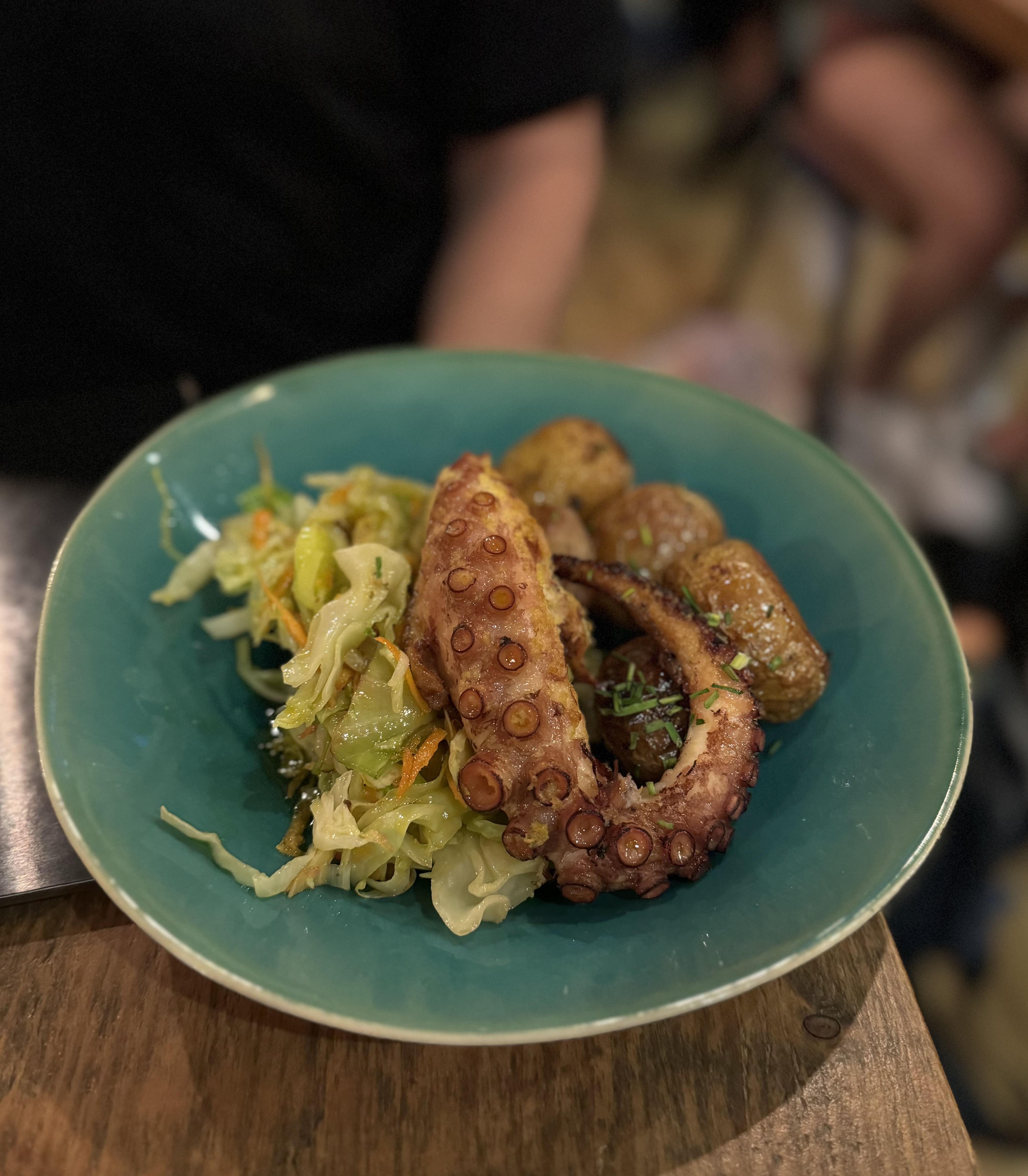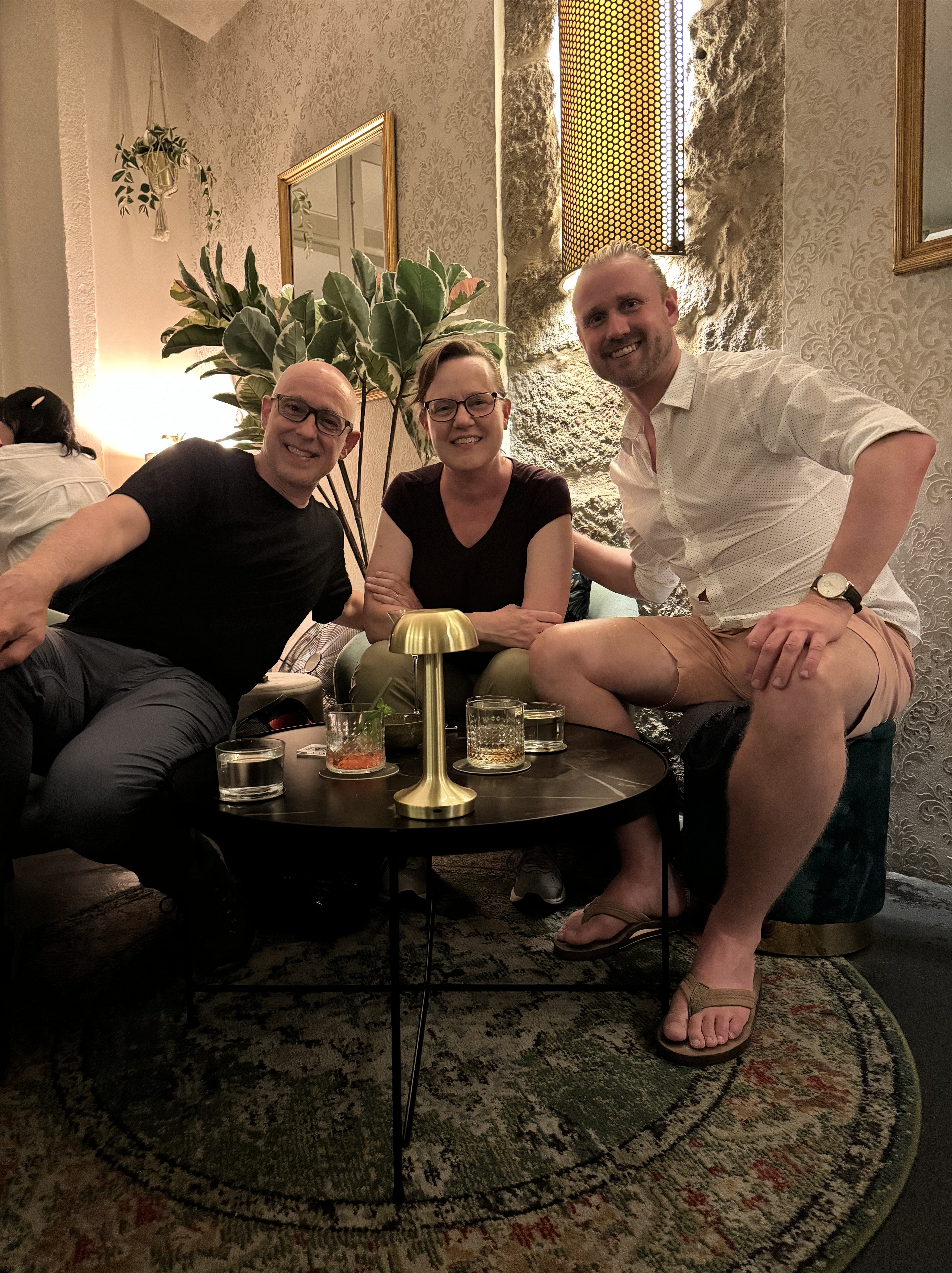 After arriving in Porto, we had a quick break before an orientation walk with our guide. Porto is built on the side of a hill and getting around requires climbing many stairs and heading up and down very steep streets. We then had a great dinner at a small restaurant called The Wine Box. The walls of the restaurant were decorated using the side of wooden wine boxes. They offered a great variety of local wines and small menu of well made food. We enjoyed some local wine as recommended by our waiter. We tried croquettes, sausage puffs, and the ham tortilla. Matt tried an octopus dish prepared using a recipe specific to Porto. After dinner, we stopped by a small cocktail bar next to the hotel for an after dinner drink and ran into our guide.
