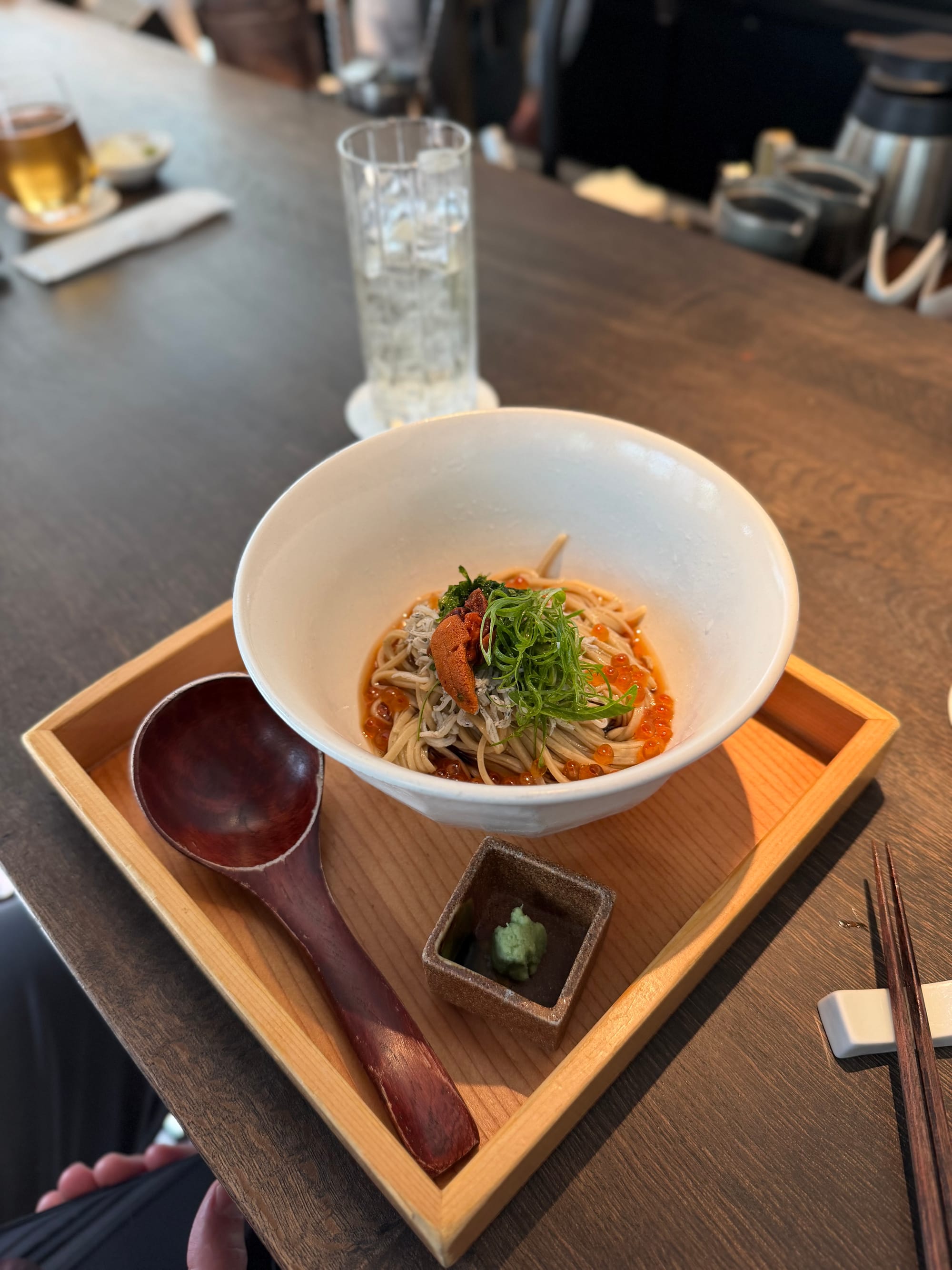 We decided to visit the Shibuya neighborhood this morning. Shibuya is known as a vibrant, neon-lit ward in central Tokyo and a major hub for youth fashion, nightlife, and culture. Most notably there is Shibuya Scramble Crossing, commonly known as Shibuya Crossing. It has been described as the world's busiest pedestrian crossing, with as many as 3,000 people crossing during a single green light cycle. Also at the crossing is the Hachiko statue and a screen display of Hachiko. Hachiko (1923–1935) was an Akita dog renowned for his unwavering loyalty. He would wait for his deceased owner, Professor Hidesaburo Ueno, at Shibuya Station for nearly 10 years after his owner’s death. After visiting the sites, we stopped by some of the interesting shops in the neighborhood like Mega Don Quiote and Loft. Matt was able to find a lunch spot that offered an Omakase menu that allowed him to have an omakase experience while Laurie could order off of the menu. Omakase is a Japanese phrase meaning "I'll leave it up to you" (entrusting), commonly used in restaurants to describe a chef-curated dining experience. Laurie ordered soba noodles with a nice matcha cheesecake dessert. After serving you soba, the tradition is to give you some soba water to sip on to help digest your food. Once we filled up on lunch, we headed back to the hotel to rest up before meeting up with the tour group for orientation.