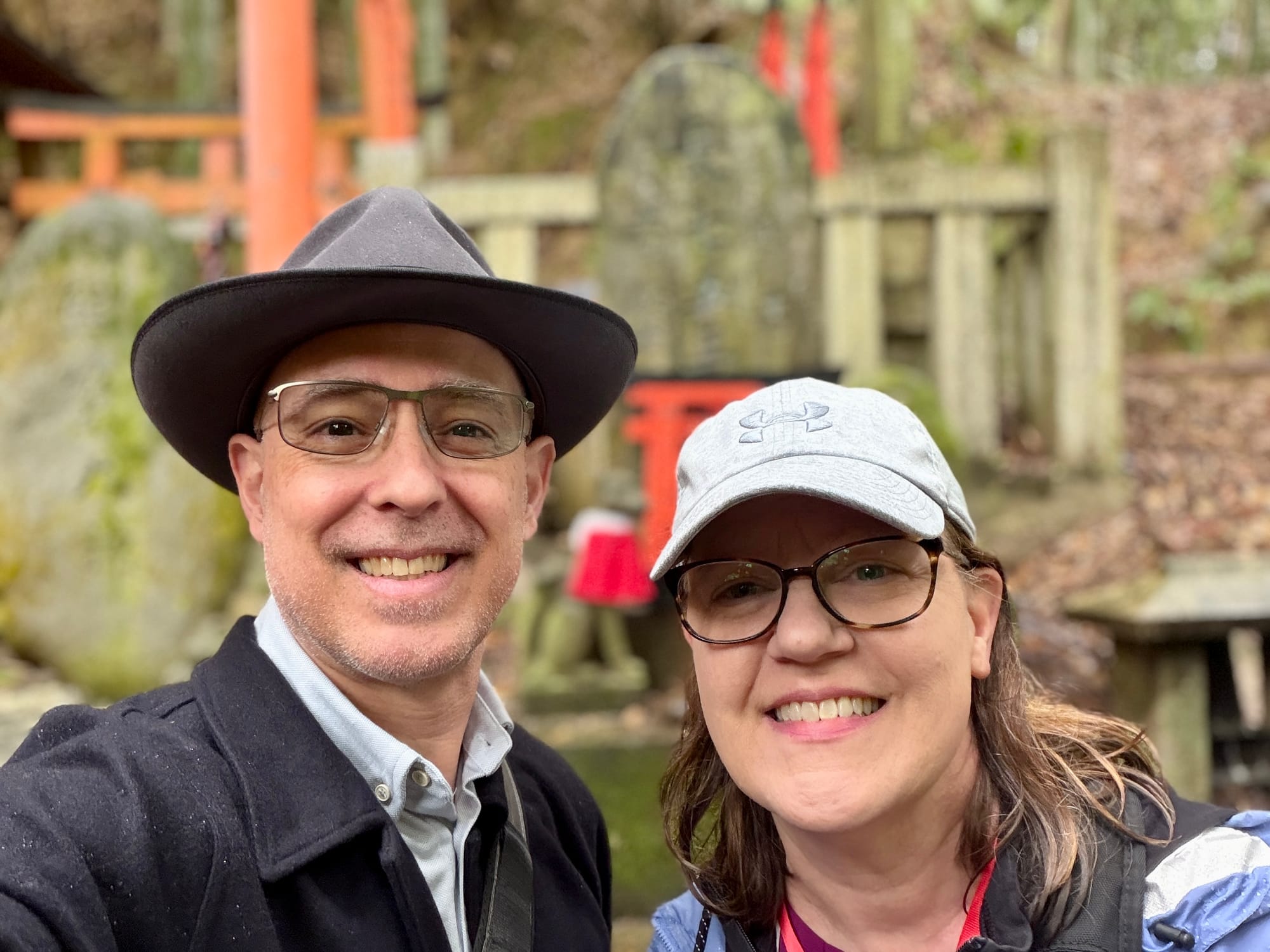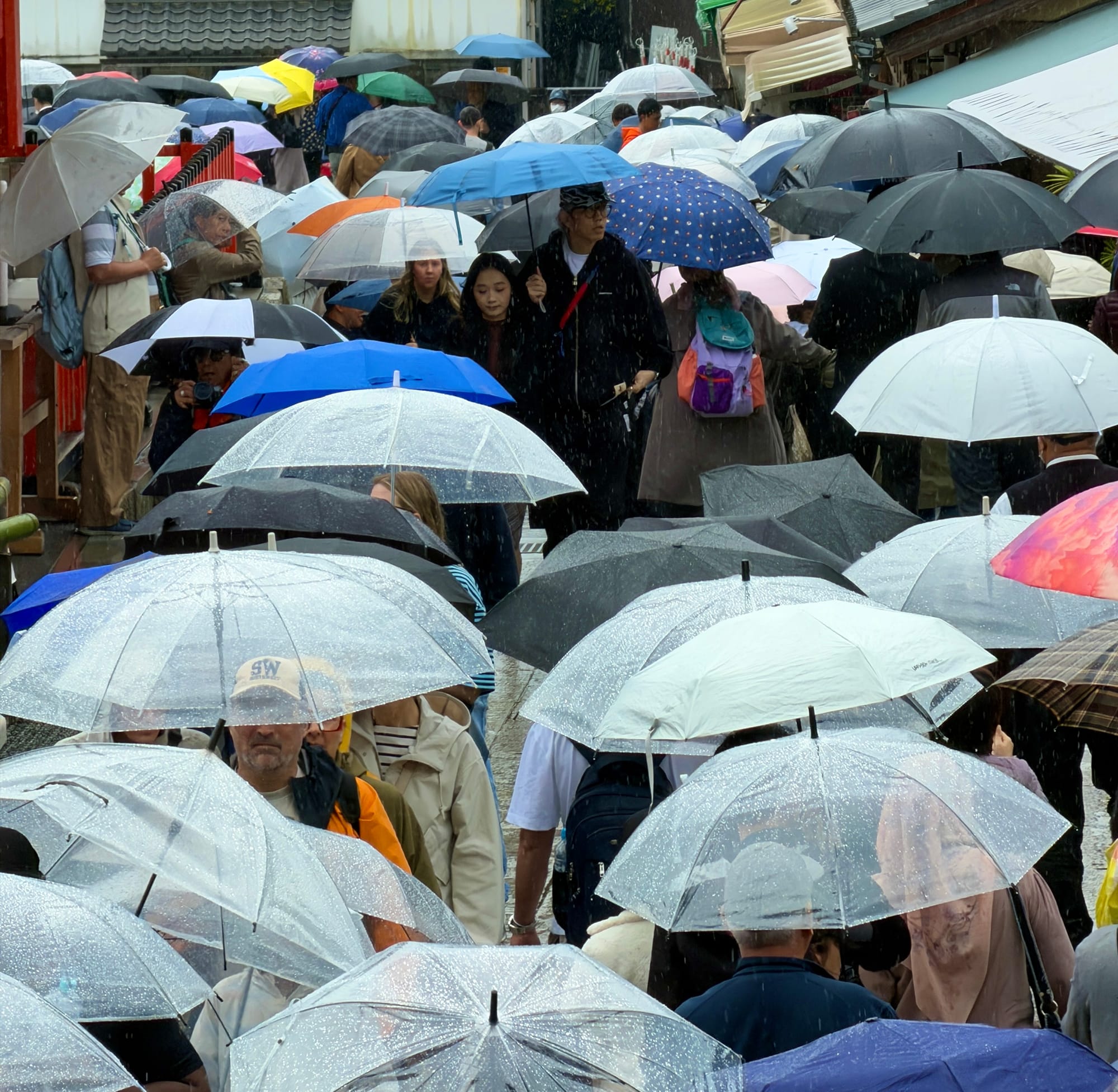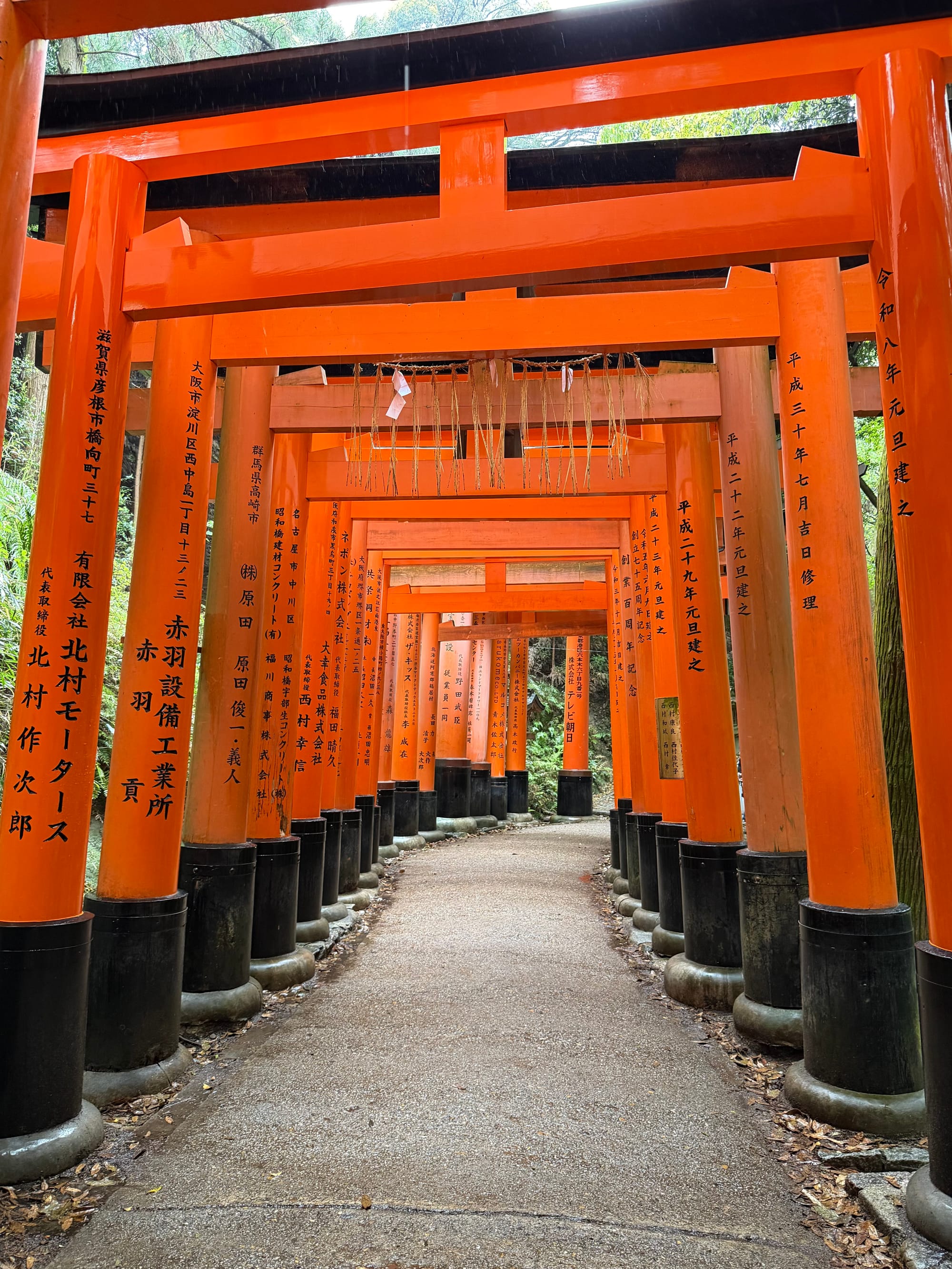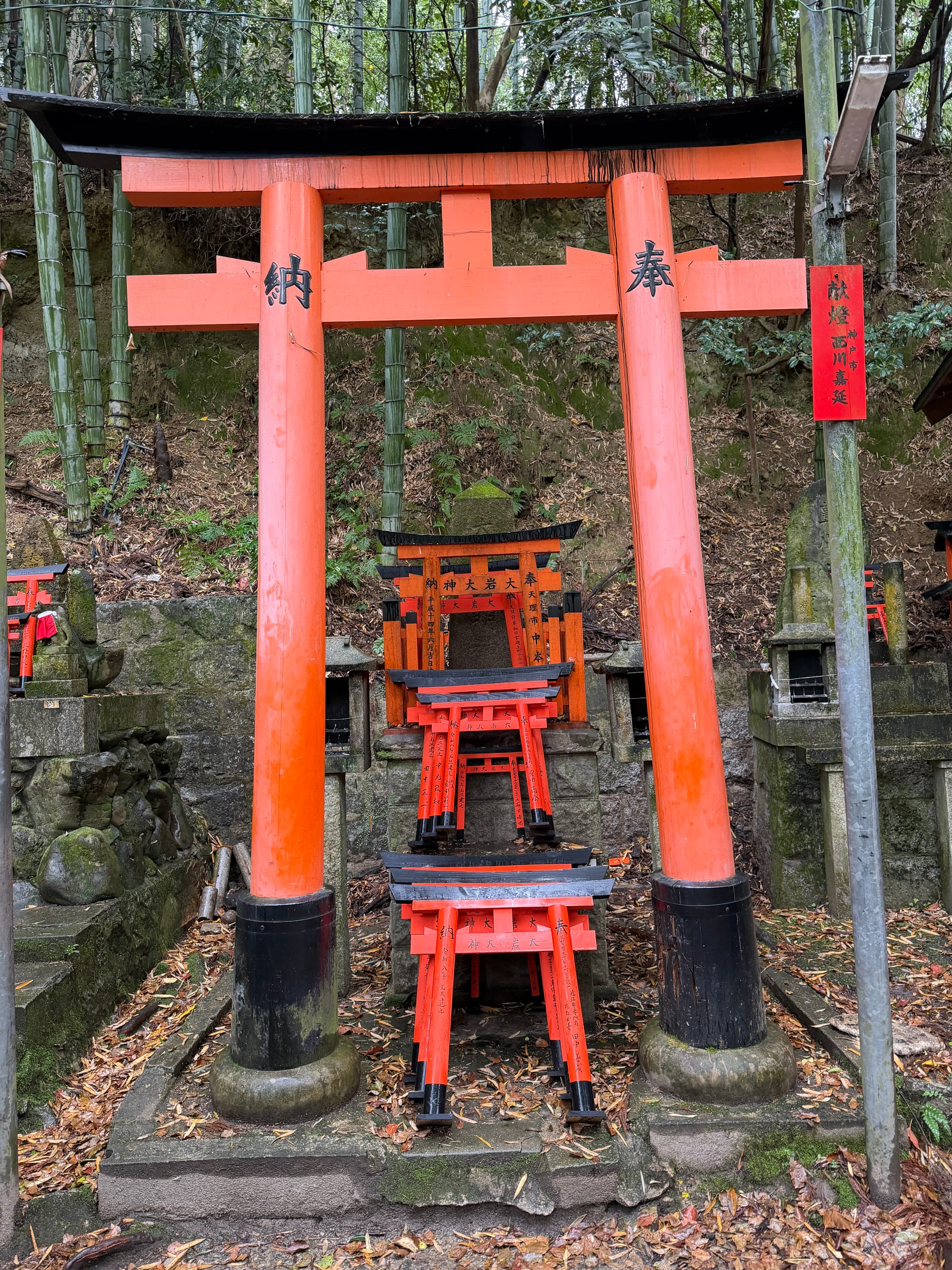 Rain or shine, the show must go on. We knew it would be a pretty wet day and were prepared for it. Our first stop of the morning was the Fushimi Inari Taisha Shrine. This is an important Shinto Shrine in southern Kyoto. It is famous for its thousands of vermilion torii gates, which straddle a network of trails behind its main buildings.