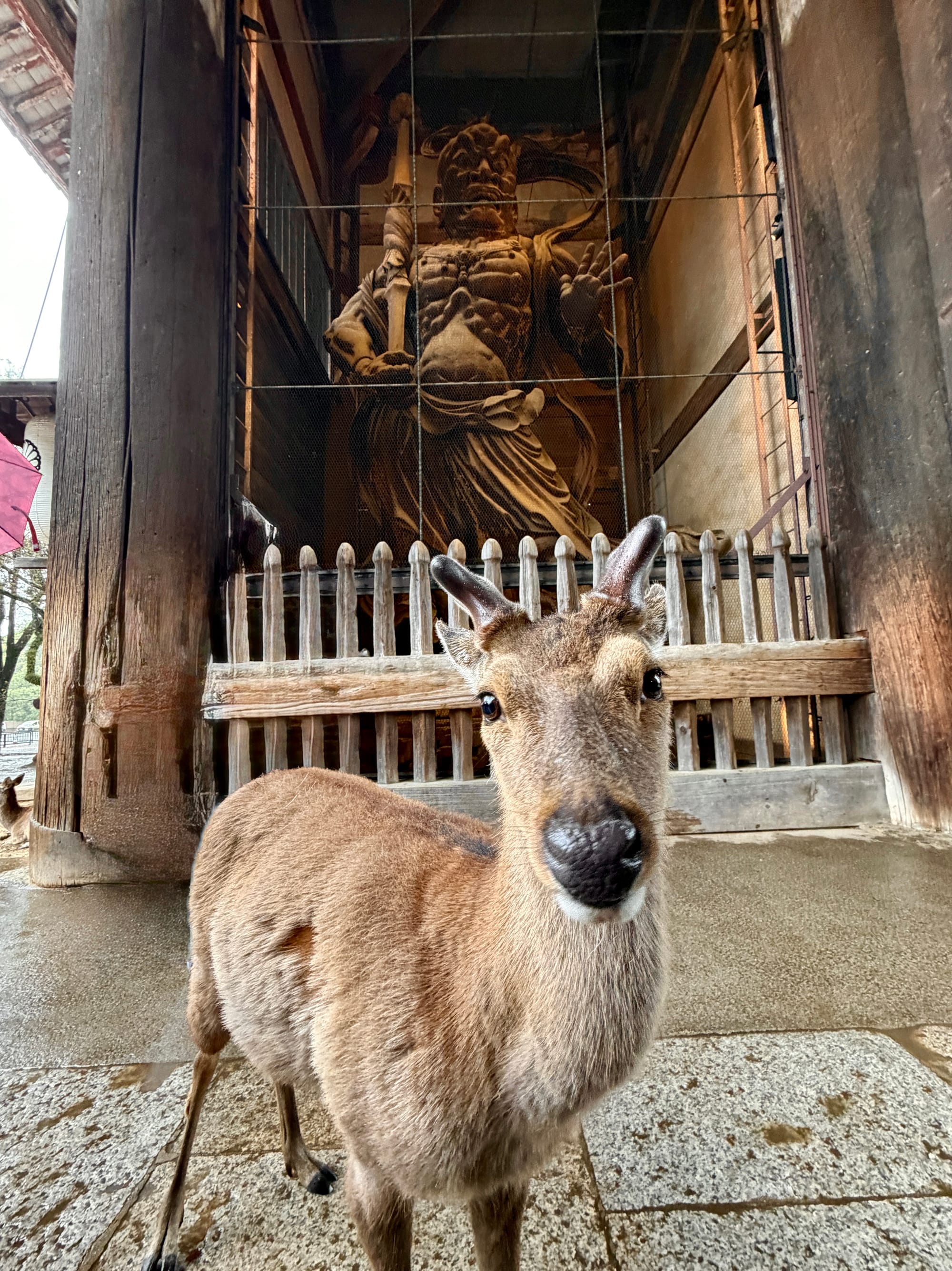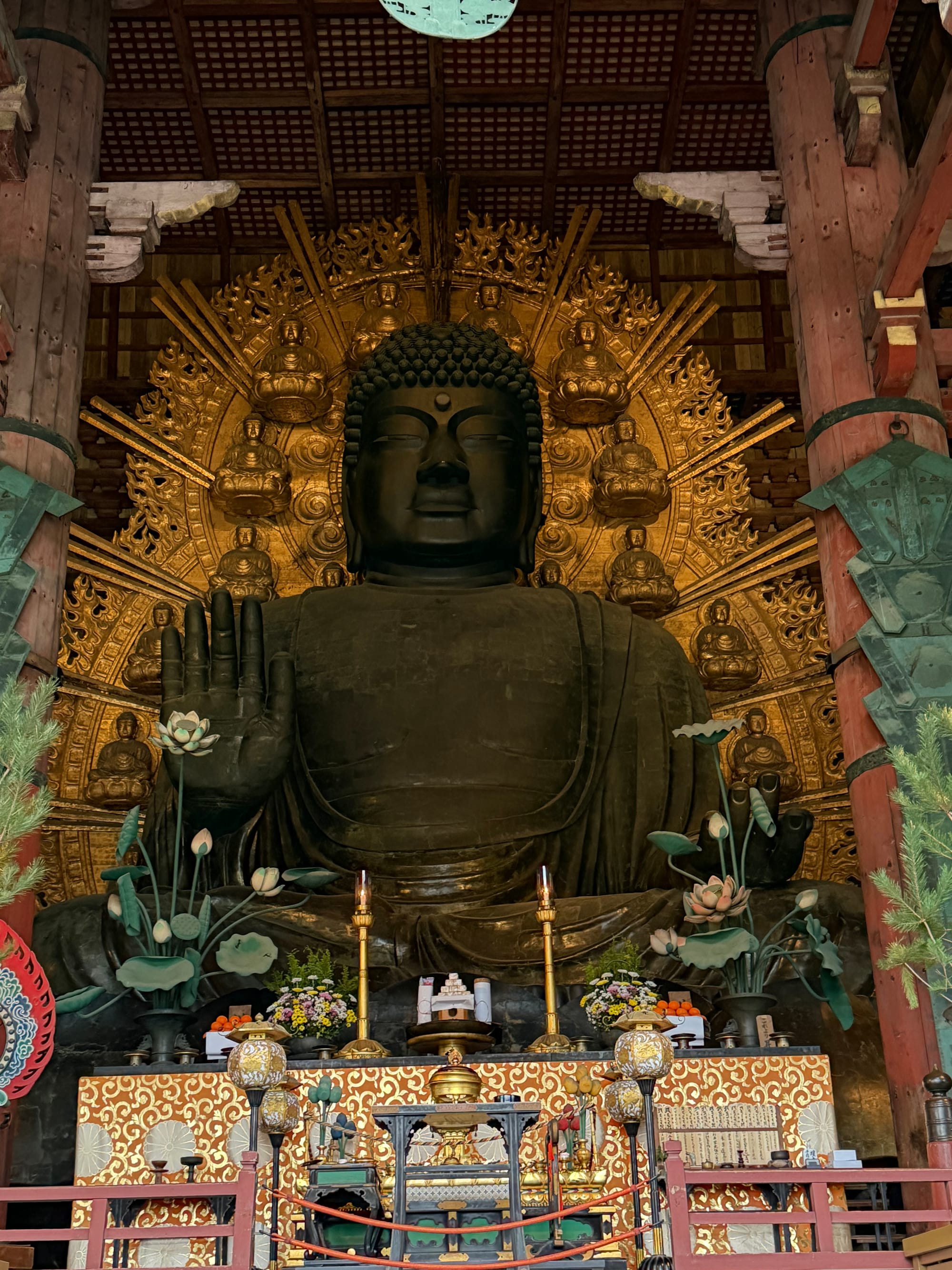 The second attraction was Todaiji Temple, a Buddhist Temple complex that was once one of the powerful Seven Great Temples. The temple is a historic UNESCO World Heritage site in completed in 752 as the head of all provincial Buddhist temples. It houses the Daibutsu (Great Buddha), a 15m bronze statue, within the Daibutsuden (Great Buddha Hall), one of the world's largest wooden buildings. The Great Buddha statue is often mentioned as the world’s largest Buddha statue, which did not make sense to us. After further research, we learned it is the largest cast Bronze statue.