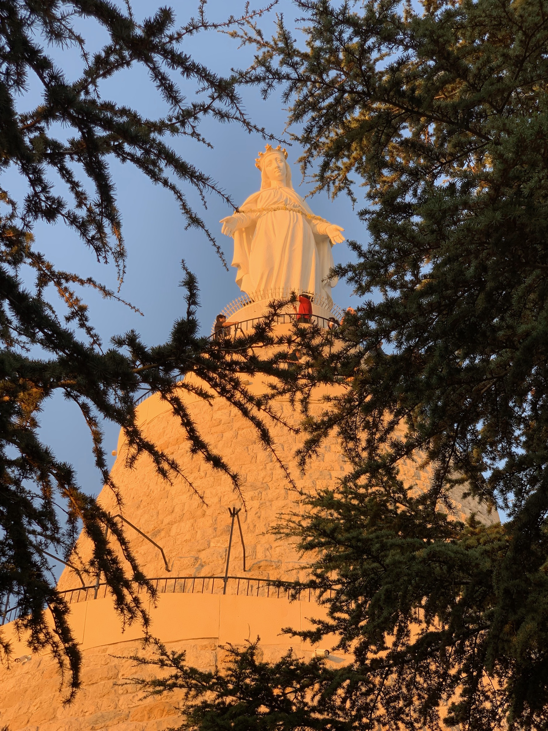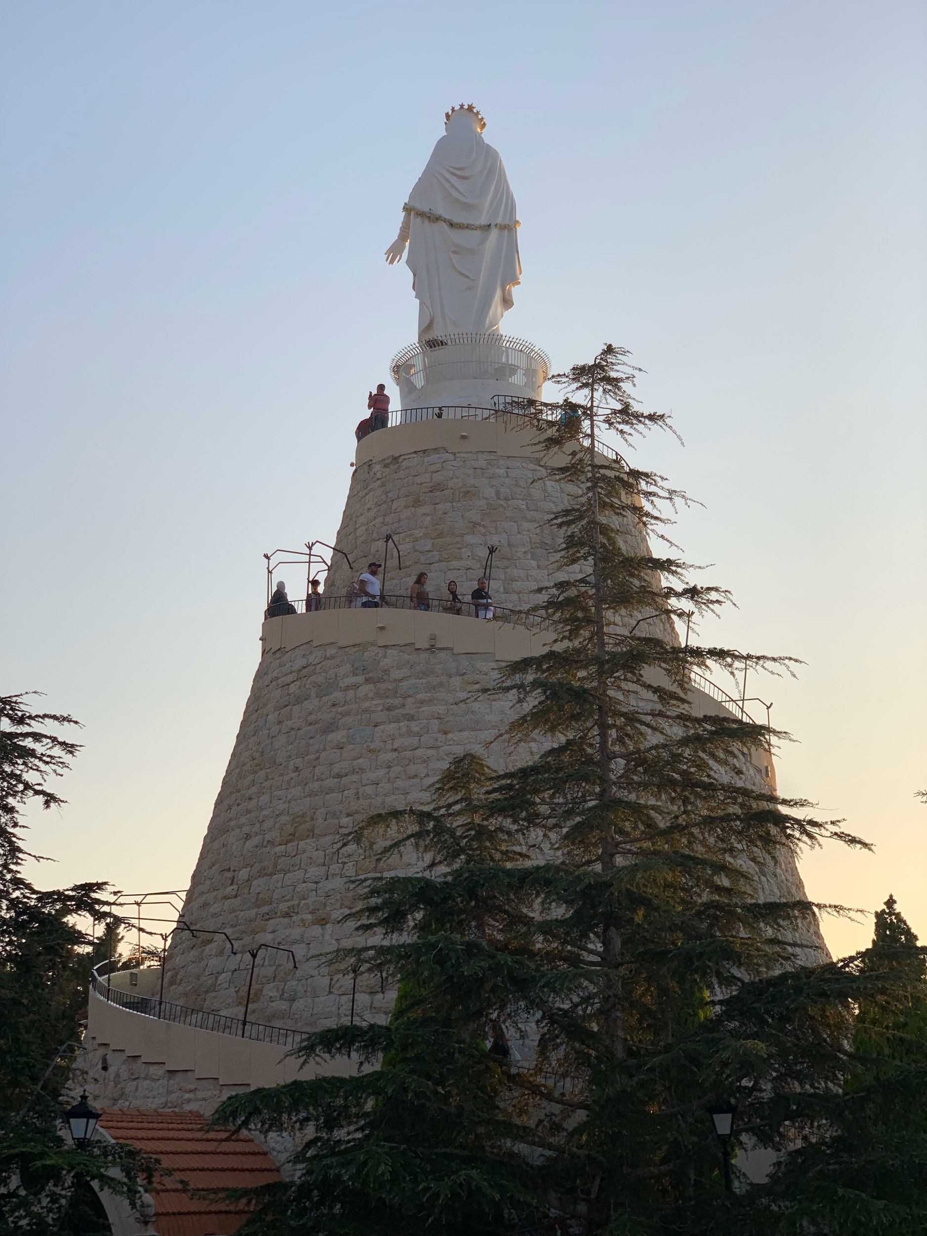On the way back to Beirut, we stopped in Jounieh to ride the cable cars and the, teleferic to Our Lady of Lebanon Church. The cable cars are built right in between the apartment buildings. After arriving at the top, we took the spiral staircase up to the top of the Virgin Mary sculpture only to be presented with a very disappointing finish to our small journey to the top. As David complained, there was no celebration to the fact that you made it to the end. There was just a very small termination where lovers would place locks on the railing.